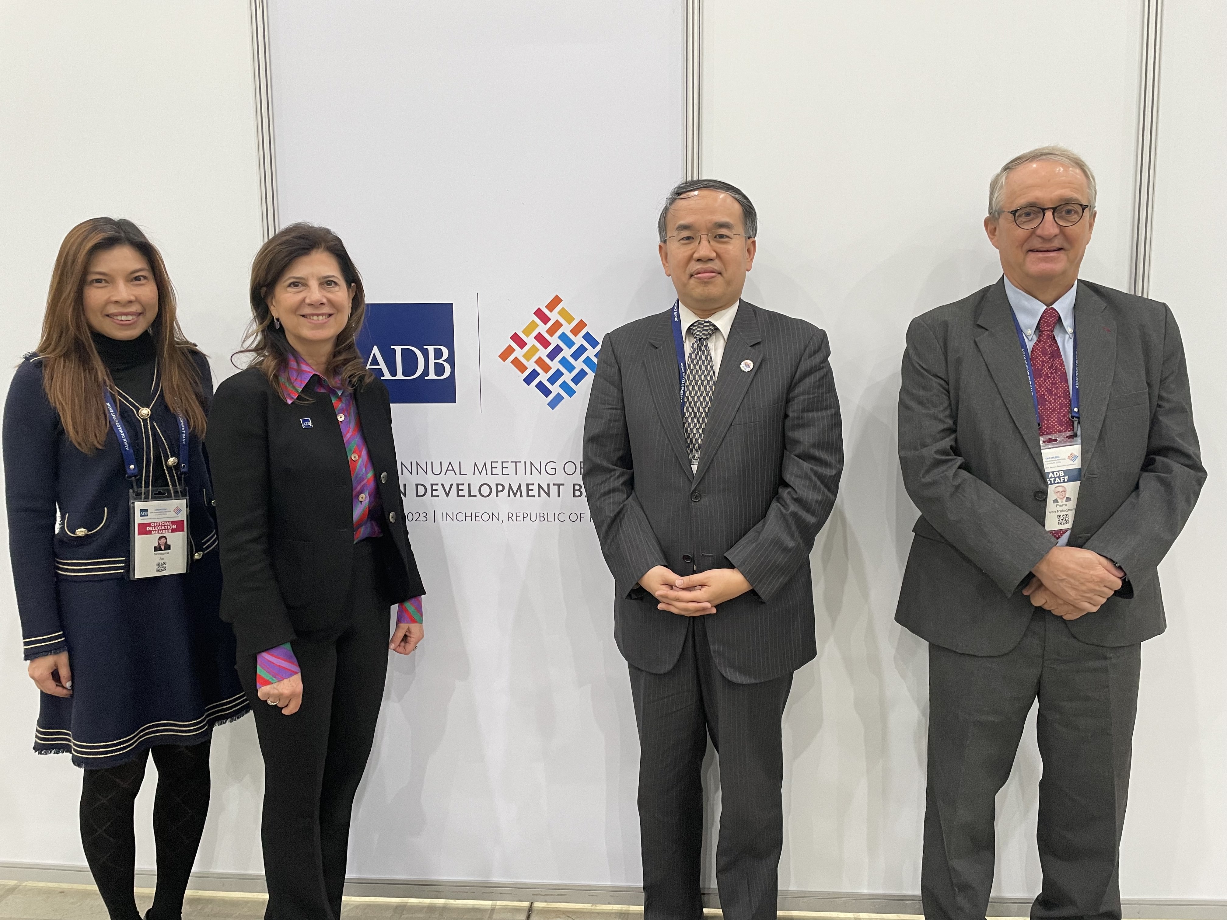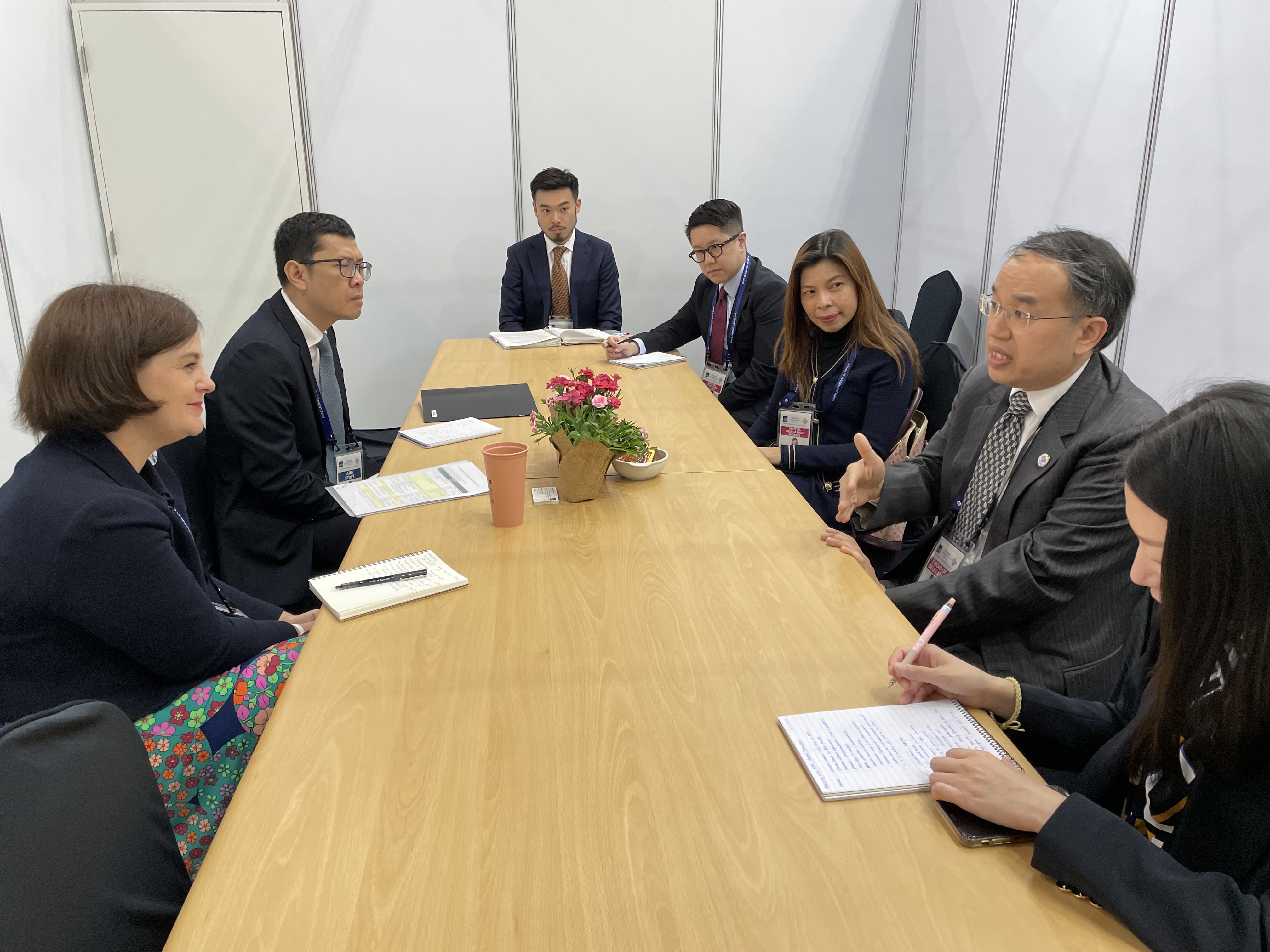 今日較早時候,許正宇與亞行副行長Roberta Casali和司庫Pierre Van Peteghem會面,並與在亞行董事會中代表香港所屬組別的執行董事Rachel Thompson會晤。在與Rachel Thompson的會議上,許正宇表示欣悉亞行在2022年透過在香港發行債券籌集了超過7.28億美元。他又補充,香港金融市場規模既深且廣,便利亞行從私營界別籌集資金,他希望亞行繼續充分利用香港眾多的投資者進行集資。