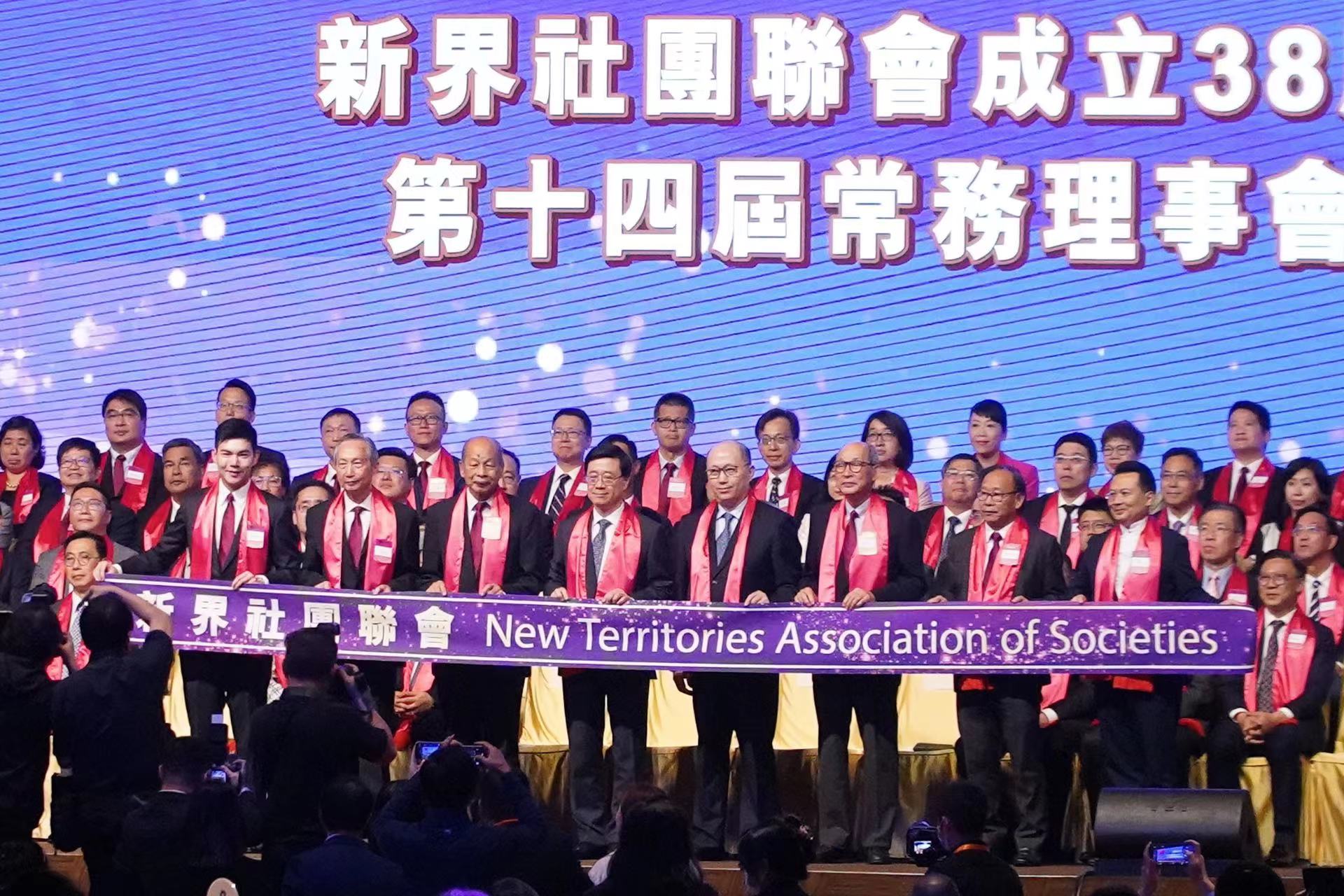 (大公文匯全媒體 記者 王俊傑)新界社團聯會(新社聯)今日(2日)在會展舉行38周年會慶暨第十四屆常務理事會就職典禮,現場高朋滿座,在過千名嘉賓熱烈祝賀下,新一屆常務理事會莊嚴就任,帶領新社聯繼續貢獻社會、再創輝煌。