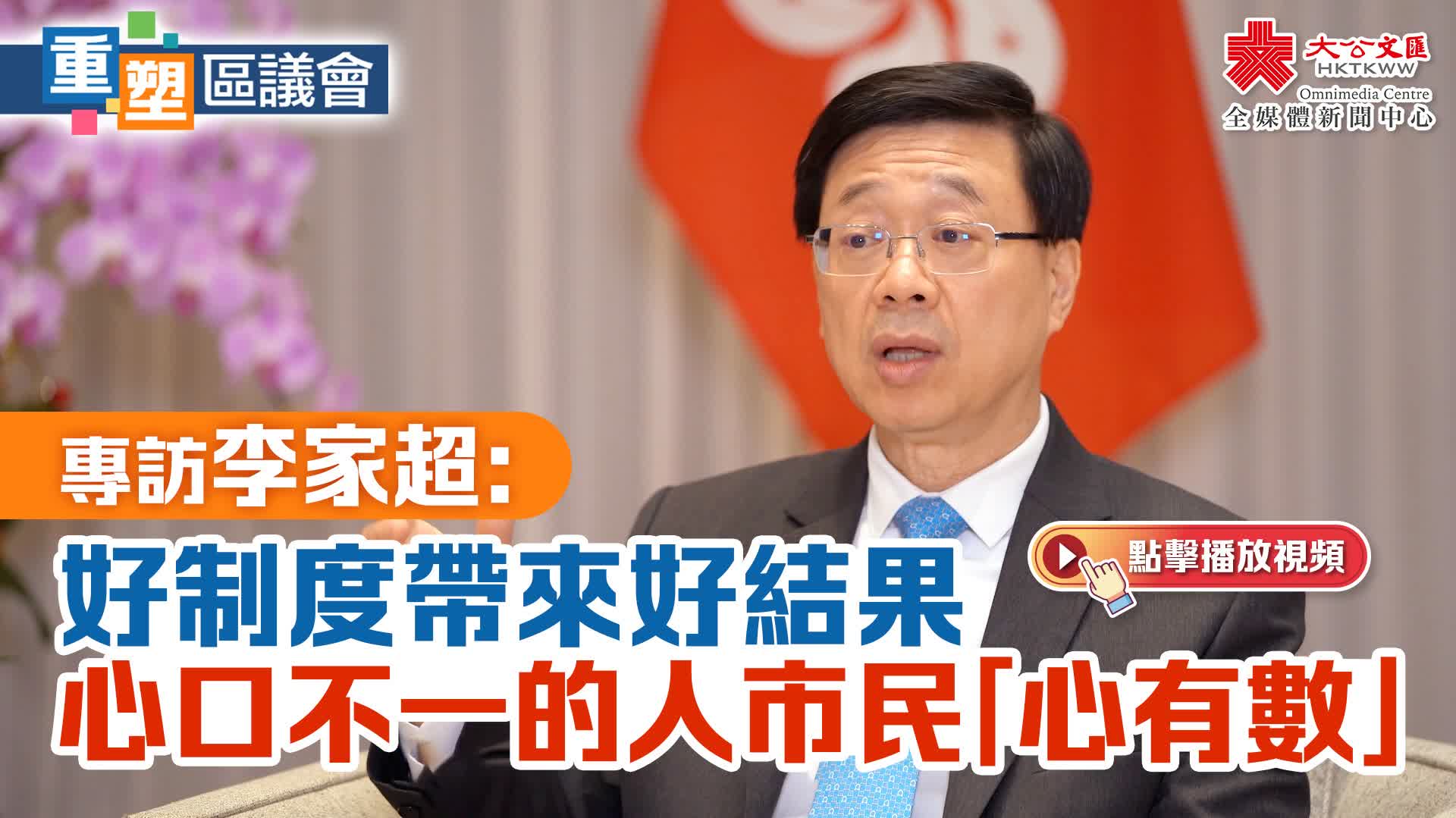 自政府公布重組區議會方案後,新的區議會共有470個議席,其組成將有四種方式,分別為委任、地區委員會界別選舉、區議會地方選舉以及當然議席。李家超認為,三類區議員各有所長,發揮各自不同功能,無論以什麼方式產生,都要真正為地區服務。不過,似乎有聲音認為民主必然與「直選數目」劃上等號,卻忽略民主或地區治理的最重要內涵,即治理質素以及市民福祉。對此,李家超回應指,任何制度最重要的是所帶來的最終結果,而制度亦影響人的表現。回顧過往區議會亂象叢生,有區議員做出支持黑暴、肆意阻止特區政府施政、製造矛盾等違反職能的行為,他強調新制度必須確保區議會得以發揮諮詢和服務的本分作用,要讓市民感受到結果。在強化治理體系方面,政府施政為民,要以市民福祉為依歸,讓市民享受到好的結果和將整體利益最大化是最有力的,因此全過程民主,是指每個環節都要「以結果為目標」。