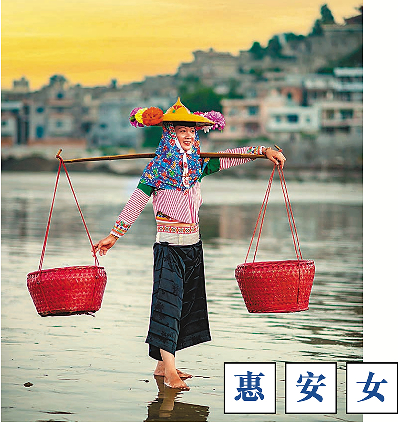 有人考究,宋元時期的泉州,因「世界第一大港」泉州港而匯聚了世界客商。蟳埔一帶,為古阿拉伯後裔。雖經歷民族融合,中亞遺風依然盛傳。蟳埔女似乎從古至今也見不到封建社會強加在女性身上的枷鎖、纏足。因勞作的需要,當地老少都有一雙天然足。為了生活,蟳埔婦女在家開海蠣、織魚網、帶小孩、操持家務。在外下海抓魚蝦,上灘塗敲海蠣,扛網、挑魚、搬運,做與男子一樣的強體力勞動。蟳埔的男人出海打魚。天剛蒙蒙亮,漁船靠岸,一隊隊蟳埔女就載着魚、蝦、蟹、海蠣奔向各個水產市場販賣,形成了當地常見的「蟳埔阿姨」魚檔。蟳埔女不僅早已走在新國潮前沿,她們在持家、討海、經商各方面都可堪稱「女中豪傑」。