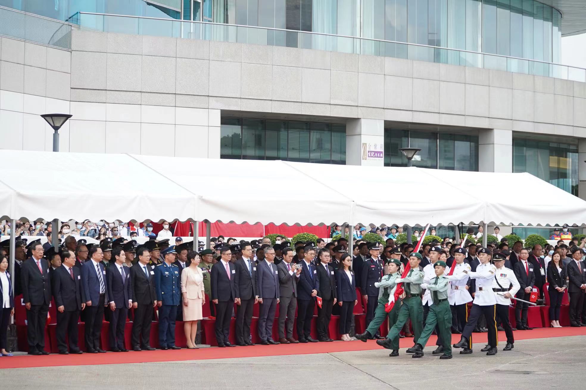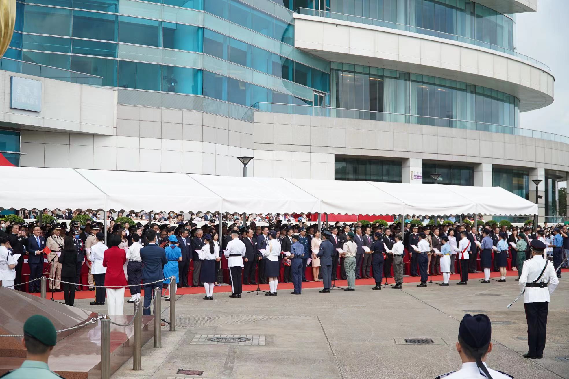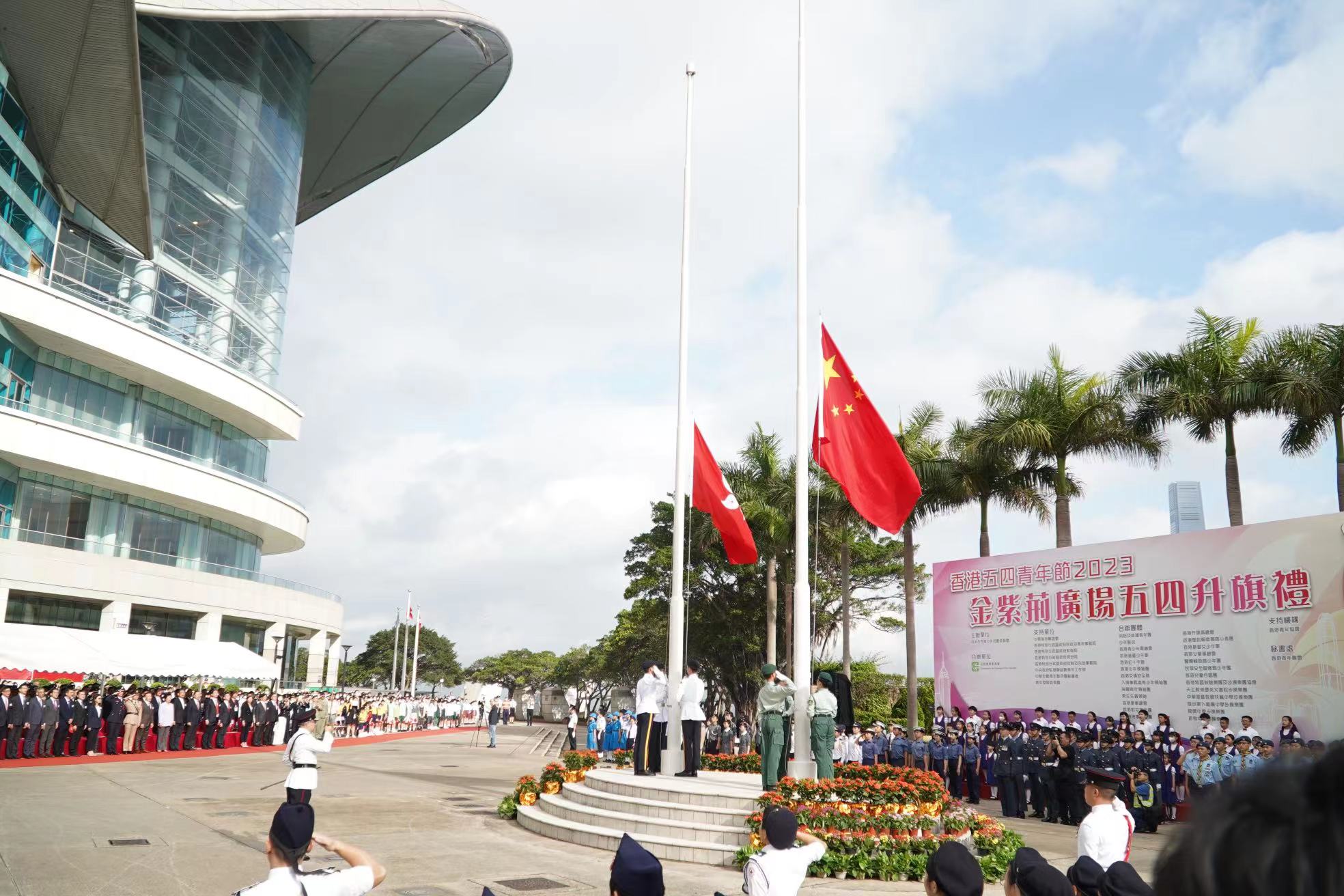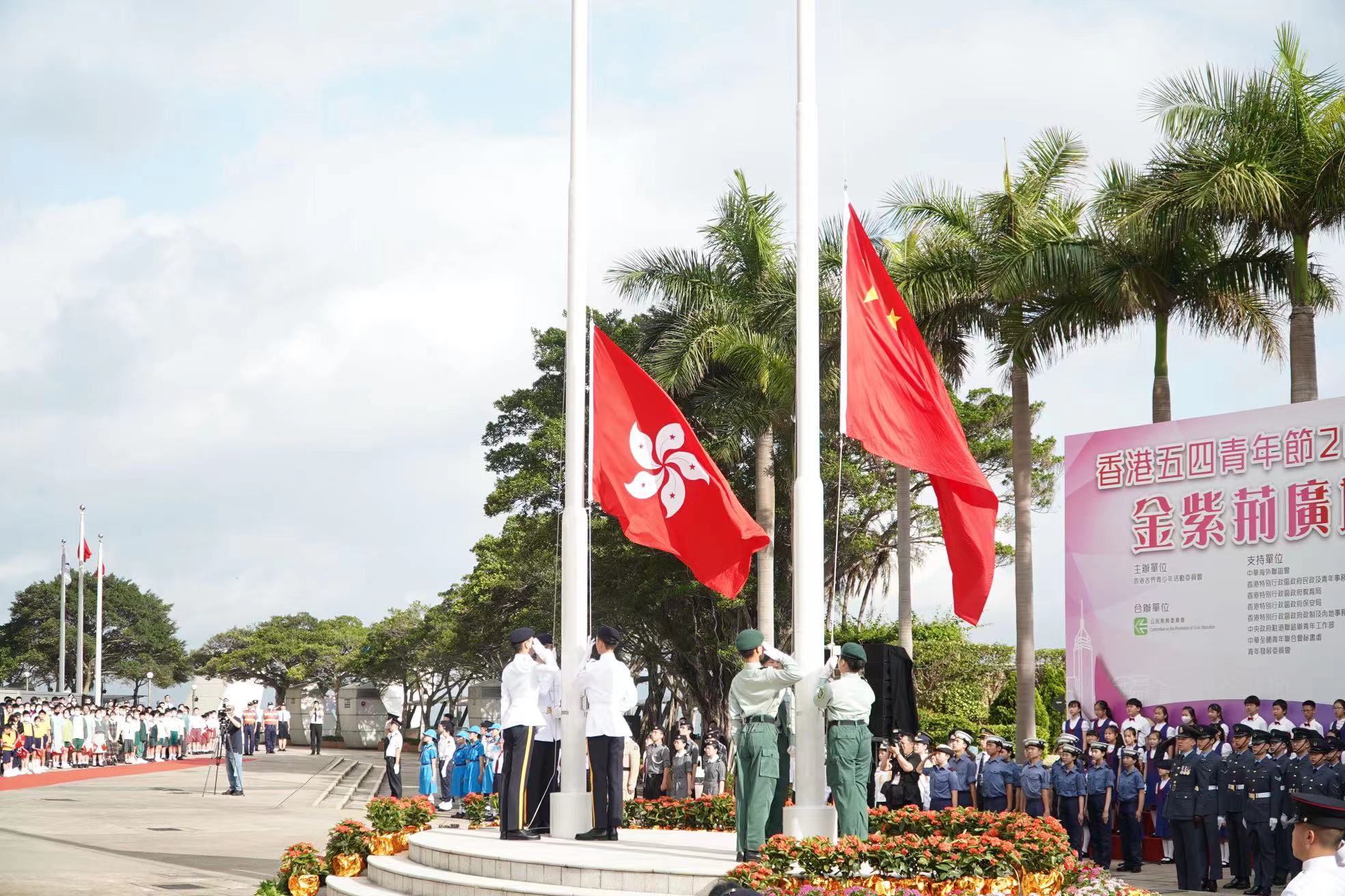 大公文匯全媒體報道,為紀念五四運動,香港各界青少年活動委員會今日(4日)在金紫荊廣場舉行升旗禮。政務司司長陳國基、中聯辦副主任陳冬、外交部駐港特派員公署副特派員潘雲東、保安局局長鄧炳強、民政及青年事務局局長麥美娟等出席。