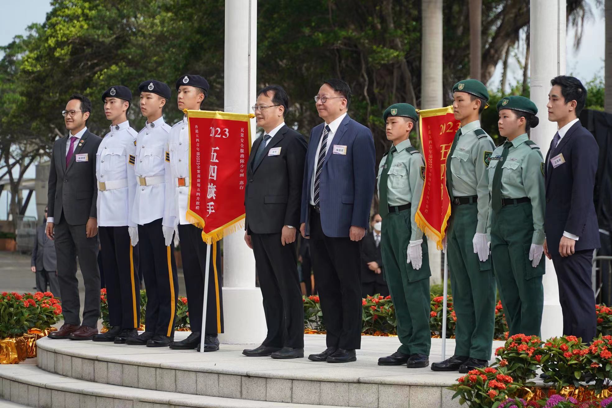 今次是疫情後首次復辦五四青年節升旗禮,參與活動的19個青少年制服團隊全部以中式步操列隊,當中民安隊少年團儀仗隊及青少年軍擔任升旗隊及護旗隊,並配以銀樂隊奏樂進場。其中,民安隊少年團儀仗隊及青少年軍擔任升旗隊及護旗隊,其後不同制服團隊各派一名代表朗讀「五四宣言」。現場有大批小學生參與觀禮。