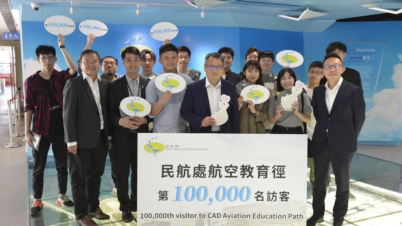 大公文匯全媒體報道,民航處航空教育徑自2012年正式開幕以來,累積接待人次於今日(5月4日)突破十萬。民航處航空教育徑的第十萬名訪客為來自職業訓練局就讀航空課程的學生。他們除了獲民航處處長廖志勇在航空教育徑親自接待,更獲贈與航空主題有關的紀念品,以慶祝航空教育徑這個重要的里程碑。同學們對於能夠參與並見證這個別具意義的時刻均感到興奮。