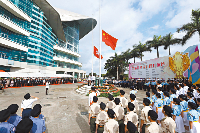 特區政府政務司司長陳國基昨日出席升旗禮後,在社交平台發文表示,見到來自全港學生和多個青少年制服團體參與,彰顯愛國情操,令其深感自豪和鼓舞。「五四運動讓我們好好反思,當時國家積貧積弱,受到外國侵略壓迫,國家不安全,人民福祉無從談起。五四運動所表現的是愛國、進步、民主、科學的精神,激勵一代又一代同胞百折不撓、自強不息地推動社會向前和國家發展。」