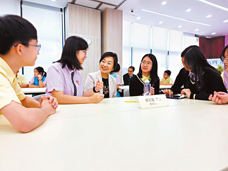 為深化青年學生相關認知及傳承五四精神,多間學校昨日開展了教育活動 。教育局局長蔡若蓮上午到培僑書院參與五四運動學生論壇,與學生共同探討五四精神與當代青年發展的關係。她表示,同學表現認真投入,展現出對國家發展的熱情與擔當,她亦即場寫下「青年興則香港興,祝願你們以青春活力奉獻國家」,勉勵學生為國家及香港作出貢獻。