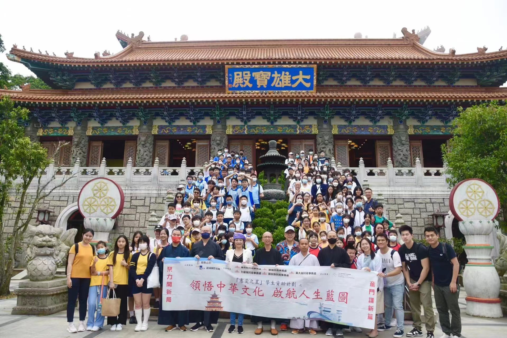 大公文匯全媒體報道,團體「龍騰志青」今日(6日)舉辦「領悟中華文化 啟航人生藍圖」參觀交流學習活動,12間學校近200人分別前往寶蓮禪寺和民航處總部進行參觀、交流、學習。