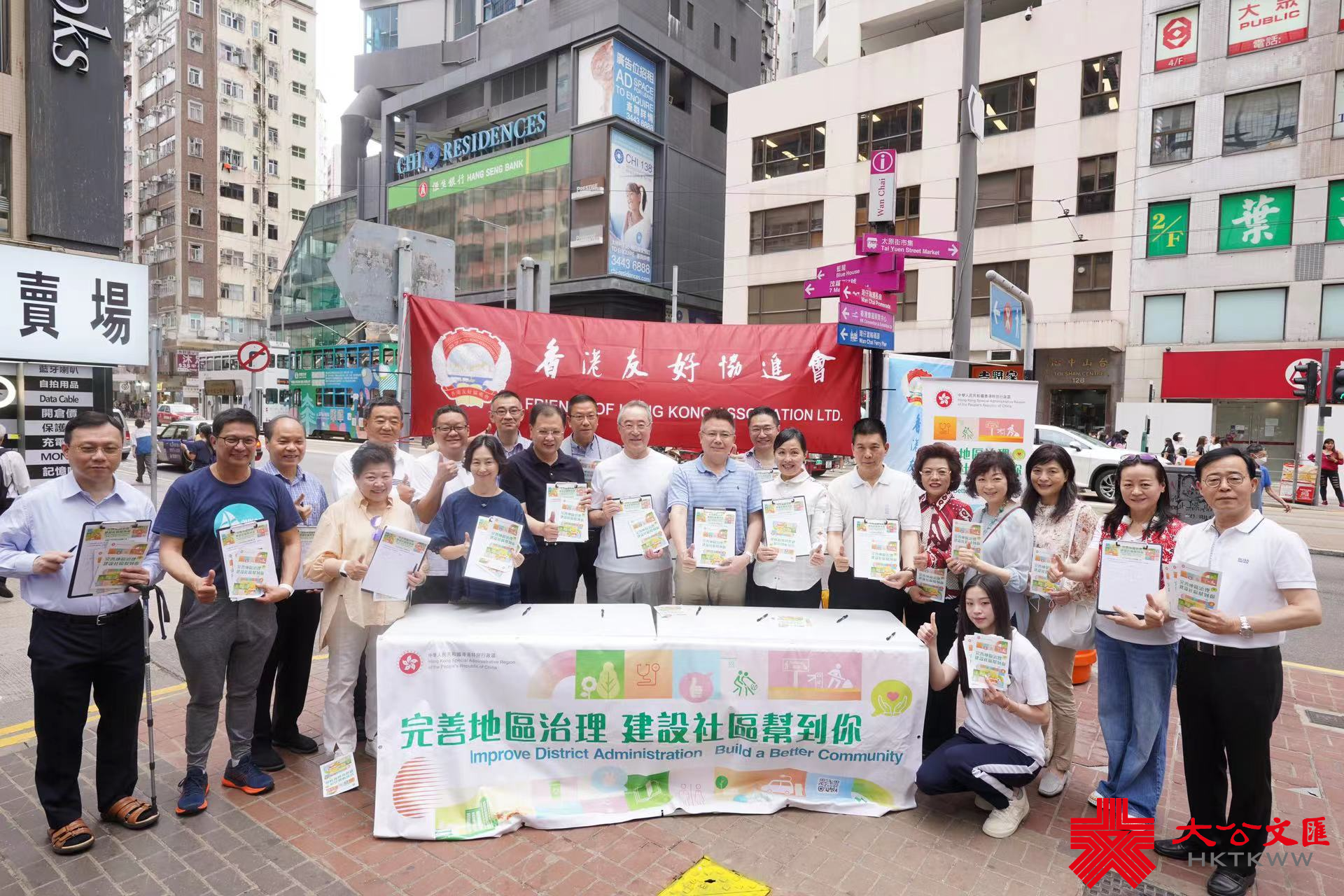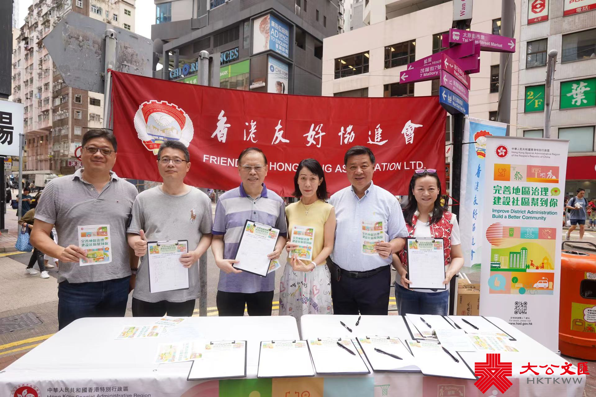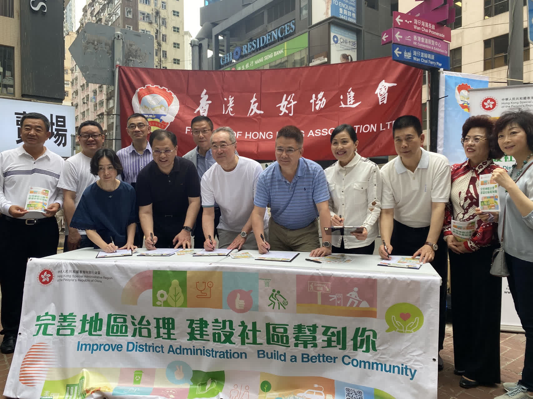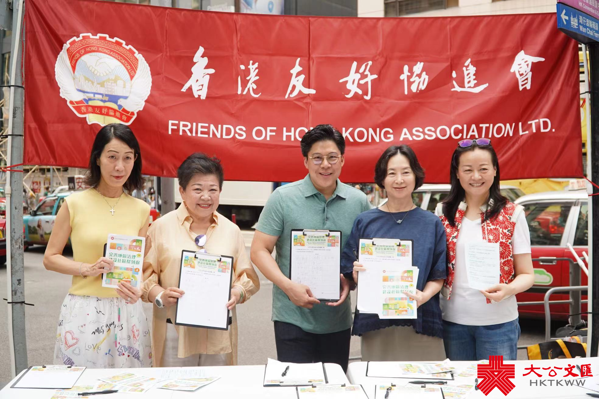 大公文匯全媒體報道,香港友好協進會今(7日)早在灣仔舉行「完善地區治理建議方案」街站活動,向市民解說完善地區治理及區議會改革方案,全國政協常委、香港友好協進會唐英年到場。另外亦有多位人大代表和政協委員現身支持,包括霍啟剛、林建岳、何超瓊等人。