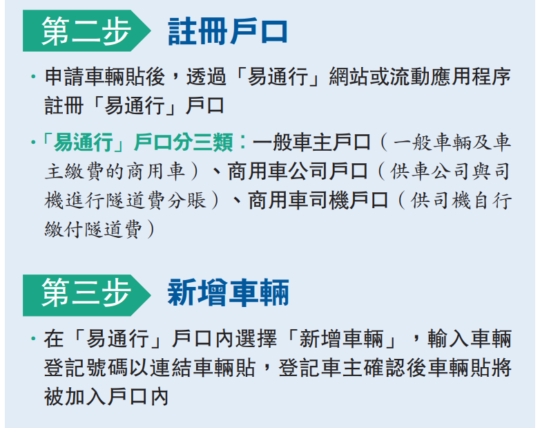 「易通行」不停車繳費服務原定今年2月26日在青沙管制區實施,惟當時不少車主投訴推行倉促,申請不到車輛貼,運輸署在實施前兩周宣布延期至昨日才推行,並在全港加設逾20個諮詢站協助車主申請有關服務如申請車輛貼及開立「易通行」戶口,但仍有車主表示申請多時仍未收到車輛貼。