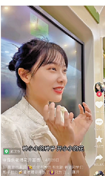除了桃子老師,另一位黃老師也因同期發布了「挖呀挖」的童謠視頻,受到了網友們的追捧。由於她顏值相對更高,漲粉量驚人,達到了一周漲粉400萬的程度。記者查閱多個視頻下方的評論發現,有很多不乏質疑甚至辱罵博主的留言,有人發出質疑其直播套現,還有網友為了誰是首發、誰是原創爭論不休。多位網友晒出截圖稱,火了之後,黃老師開始了多場直播。有專業人士粗略估算了下黃老師通過直播賺取的收入,發現僅僅五一期間的幾場直播,便收入不菲。還有消息傳言,黃老師任教於武漢一家雙語幼稚園,目前已離職創業。隨後,該幼稚園工作人員公開回應表示,黃老師目前仍在學校任教,走紅不會影響她的教學,她希望「用音樂治癒更多的人」。