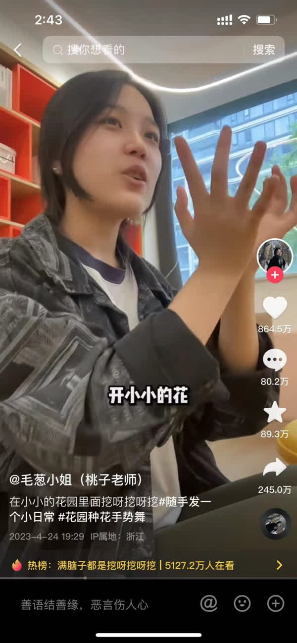 手指謠視頻獲得極大關注的同時,爭議也隨之而來。初衷只是希望用童謠治癒孩子們的桃子老師,最近時常為此感到焦慮。好在,正如歌詞中「種下種子、開出花朵」的美好寓意一樣,現實中,桃子老師也收穫了一份「雙向奔赴」的愛意。「小朋友會跟我講『老師,我在爸爸媽媽的手機上看到你啦,你很棒!』孩子們很開心也很興奮,他們的鼓勵帶給我溫暖。」