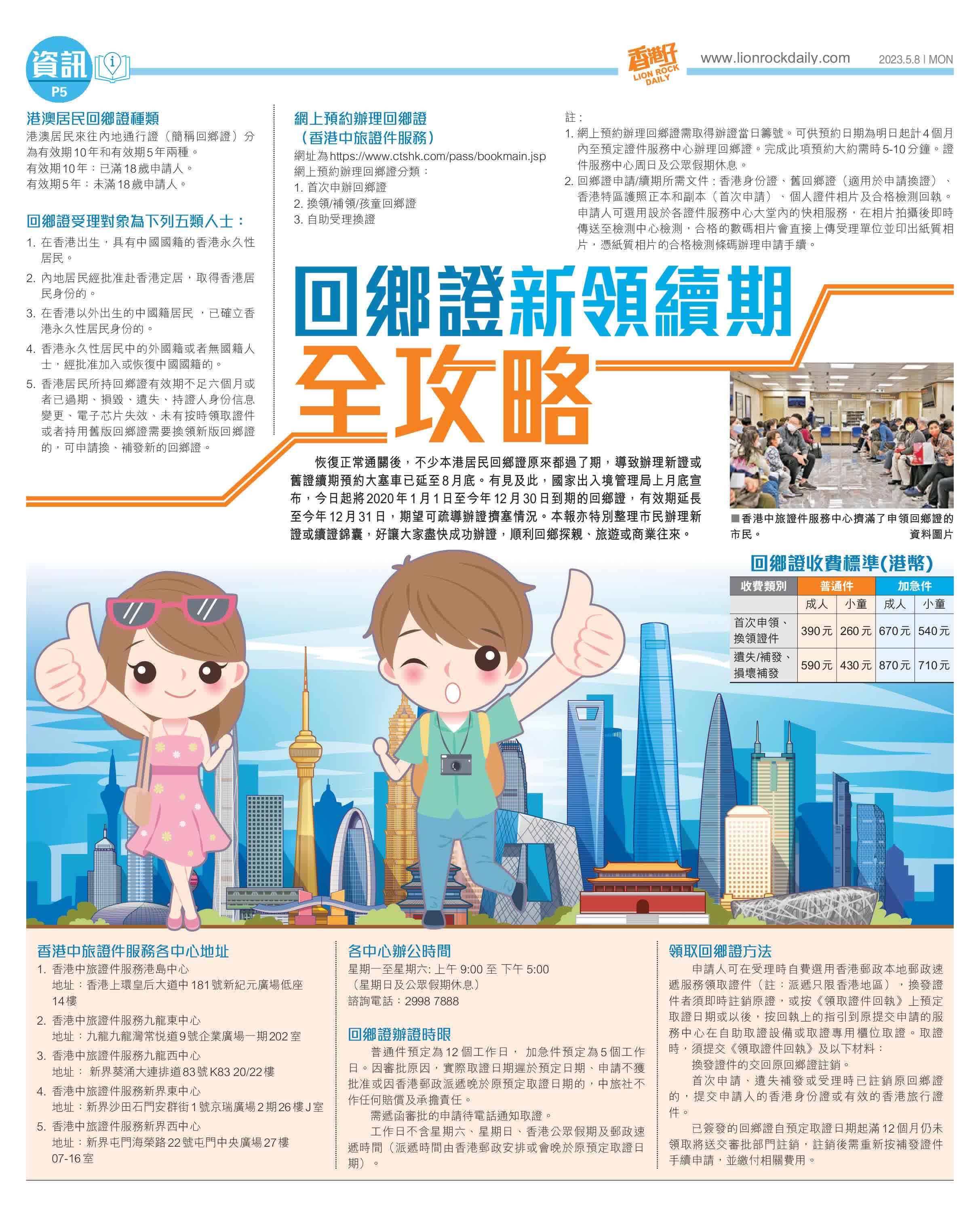 5.香港居民所持回鄉證有效期不足六個月或者已過期、損毀、遺失、持證人身份信息變更、電子芯片失效、未有按時領取證件或者持用舊版回鄉證需要換領新版回鄉證的,可申請換、補發新的回鄉證。