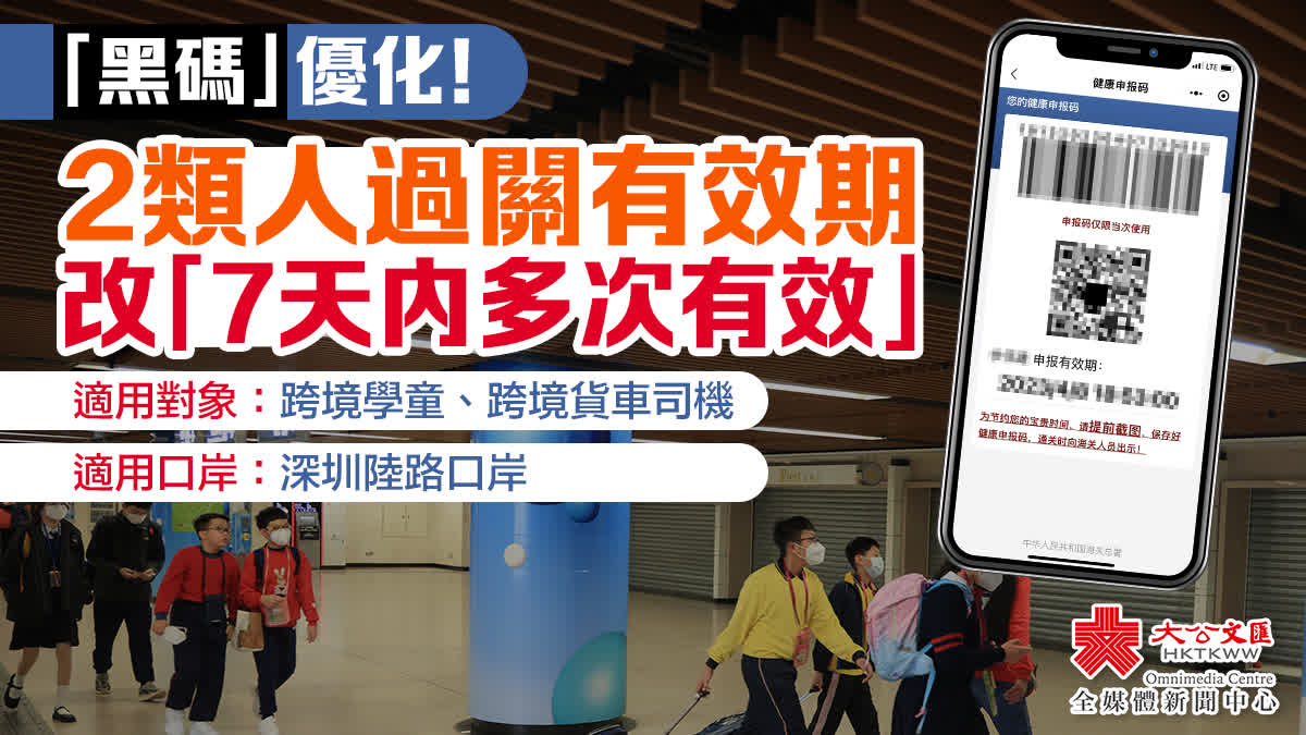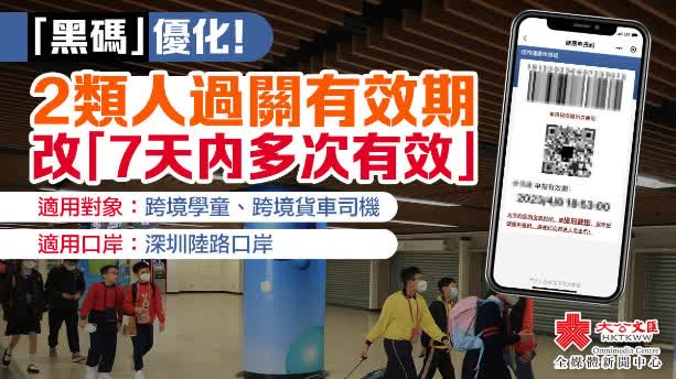 經深港陸路口岸出入境的跨境學童(港澳幼兒園、中小學在校生)、跨境貨車司機。