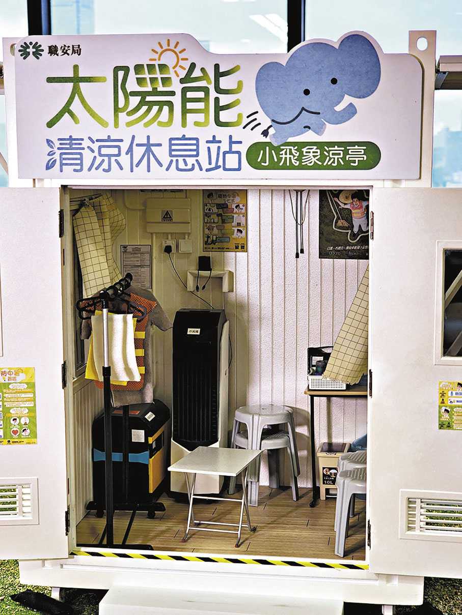 職業安全健康局總經理黃慧莊表示,現時已有不少工地開始設立清涼站供僱員休息,「為解決偏僻地方的供電問題,清涼站有太陽能板可以儲電、發電,站內亦有冷風機、抽氣扇、飲用水、風扇以及枱凳,可以通風。」