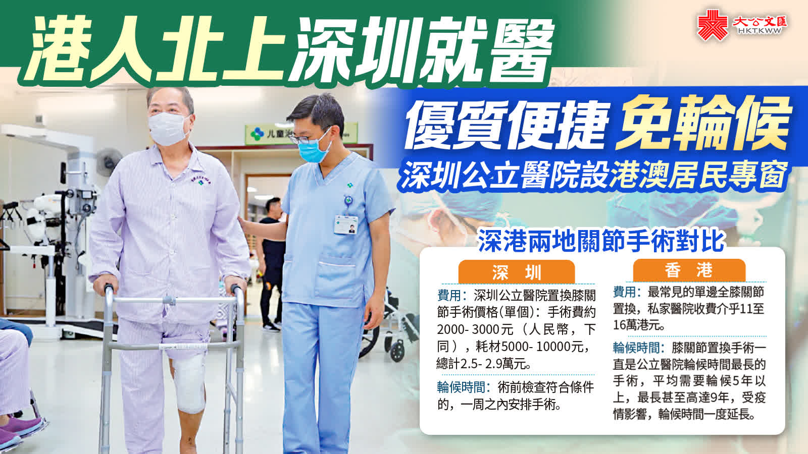 (大公報記者 郭若溪 深圳報道)隨着深港全面通關,工作、生活之餘,醫療服務也漸漸進入深港市民生活清單。近日,多位香港患者到深圳的醫院進行膝關節置換手術,手術費用平均2.7萬港元。有在香港公院苦等多年的患者,來到深圳的醫院3天便完成手術,目前均已恢復自如行走,出院回到香港生活。