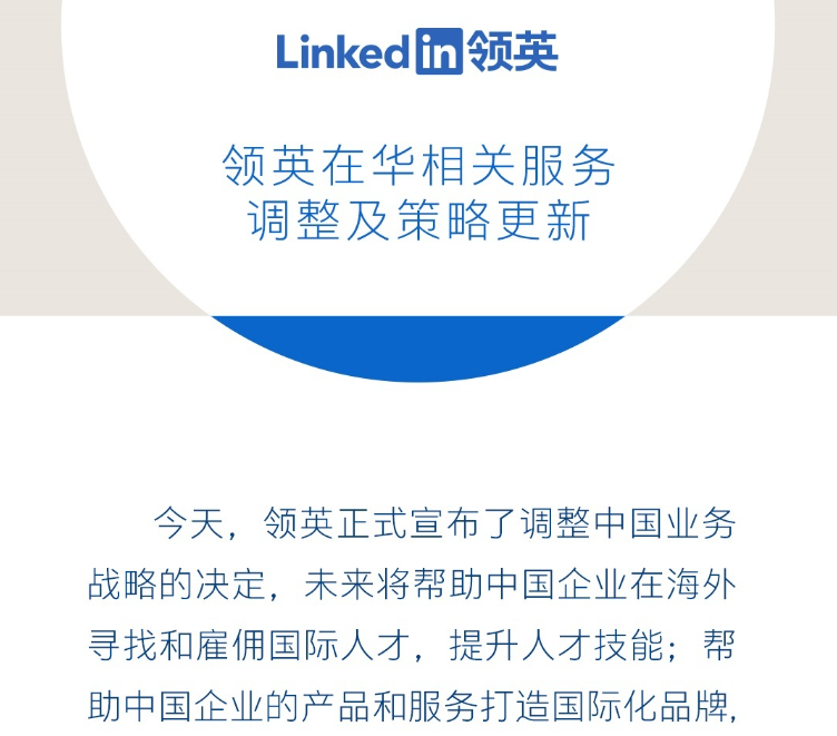 Linkedin2014年正式進軍中國,2021年以環境「具挑戰性」為由,決定大部分撤出中國,同年12月推出「領英職場」應用程式。