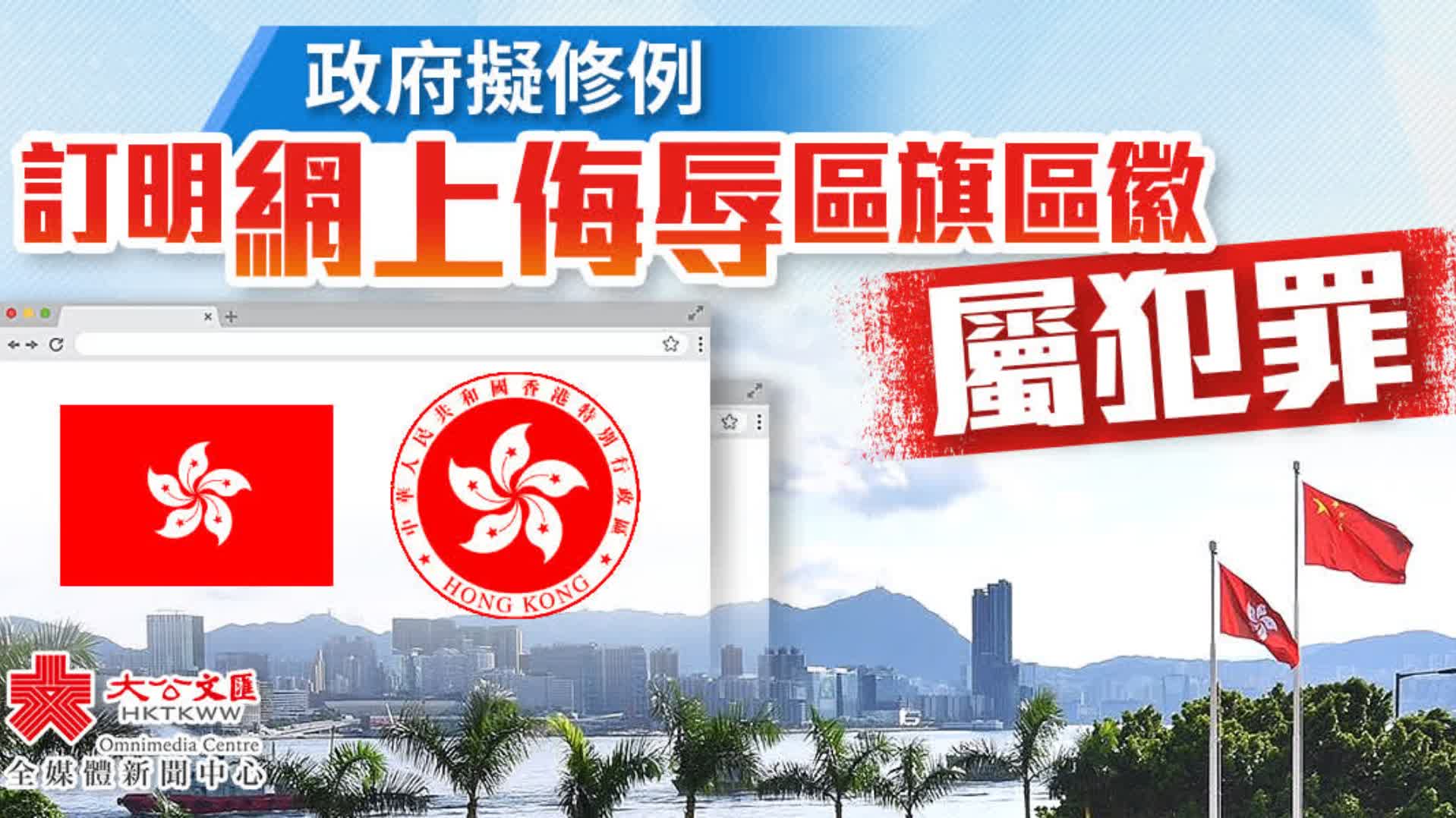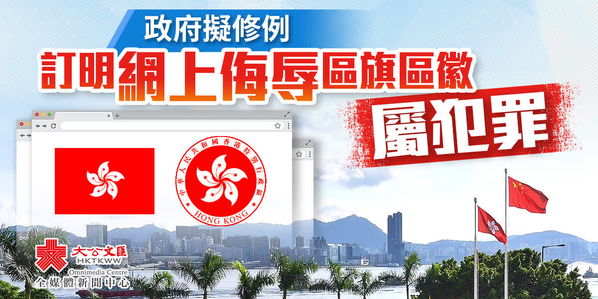 大公文匯全媒體報道,特區政府擬修訂《區旗及區徽條例》,令條例與《國旗及國徽條例》及《國歌條例》保持一致,並更清晰訂明現實和網絡世界的侮辱區旗或區徽行為,都可構成罪行。