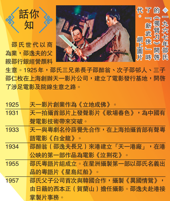 (香港文匯報 記者 胡茜、焯羚、黃金源)十年人事幾番新,如果要看香港的舊面貌,大概只能從經典的港產片回味。人人都稱讚香港電影的黃金歲月,而邵氏電影則是其中佼佼者之一,今日頻回首,仍覺得美意無窮。從香港電影黃金時代一路走來的邵氏影業,標誌人物當然是邵逸夫和方逸華,和許多邵氏電影明星、名導,而他們的「大內總管」級人馬黃家禧、樂易玲在行內都極具代表性。樂易玲至今仍為邵氏影業的執行董事,回憶起與邵氏影業相伴幾十年的歲月,她說:「有幸加入邵氏電影公司,經歷了黃金時代,同時一直在影視圈與同行一起面對行業的興衰,面對高低起伏仍舊熱愛這行業,以做電影人為榮,隨着市場拓展的愈來愈廣闊,對香港影視業的未來仍充滿希望!」