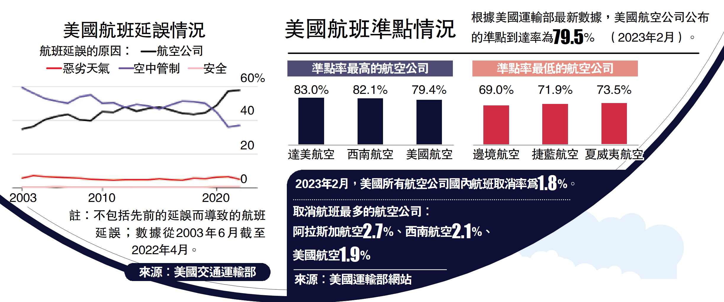 根據美國政府問責局上個月發布的報告,在近幾年新冠疫情、通脹激增的背景下,航空業先是遭遇重創,縮減人手,接下來又碰上需求的猛烈回升,導致因公司自身原因發生的航班取消或延誤數量激增。但是,在疫情期間,美國航空公司拿到540億美元(約4200億港幣)的巨額聯邦救助金,航班混亂問題卻未改善,引起政府和國會的不滿。去年12月美國暴風雪期間,西南航空取消了近1.7萬個航班,運輸部和司法部正在調查西南航空是否安排了超出其實際能力的航班。