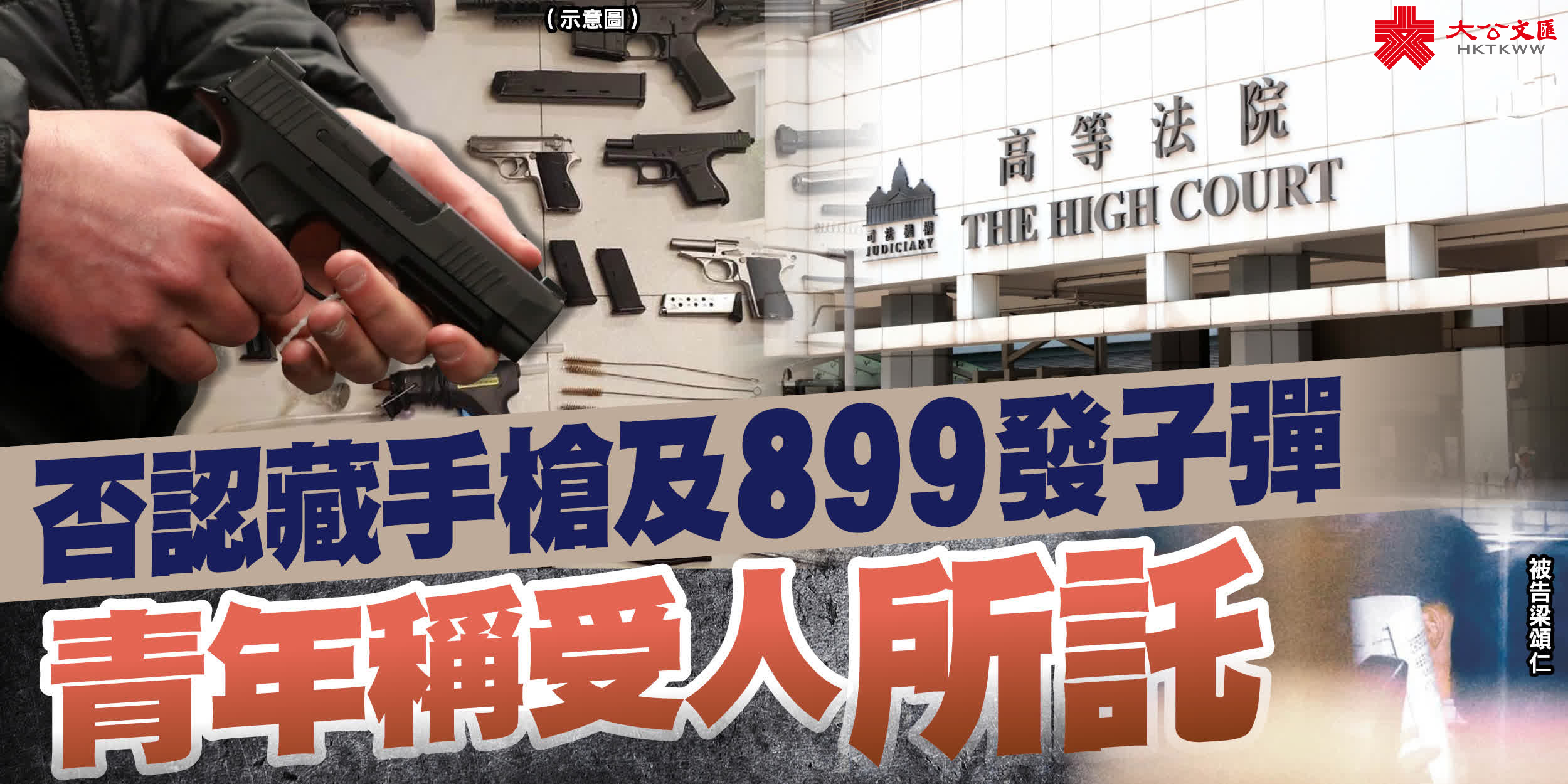 大公文匯全媒體報道,一名男生涉嫌在2018年底於紅磡寓所,管有手槍、滅聲器和899發子彈,他否認一項無牌管有槍械或彈藥罪,案件昨日於高等法院開審。控方案情稱,被告在警誡下解釋,他受人所託保管物件, 對方聲稱「啲嘢係合法」、「唔會有事」,只是「道具」、「裝飾用」。控方主張被告在知情下管有槍械和彈藥。
