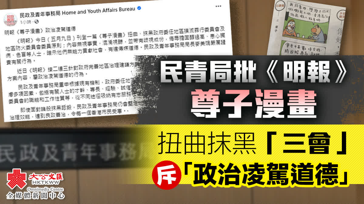 民青局批《明報》尊子漫畫扭曲抹黑「三會」 斥「政治凌駕道德」