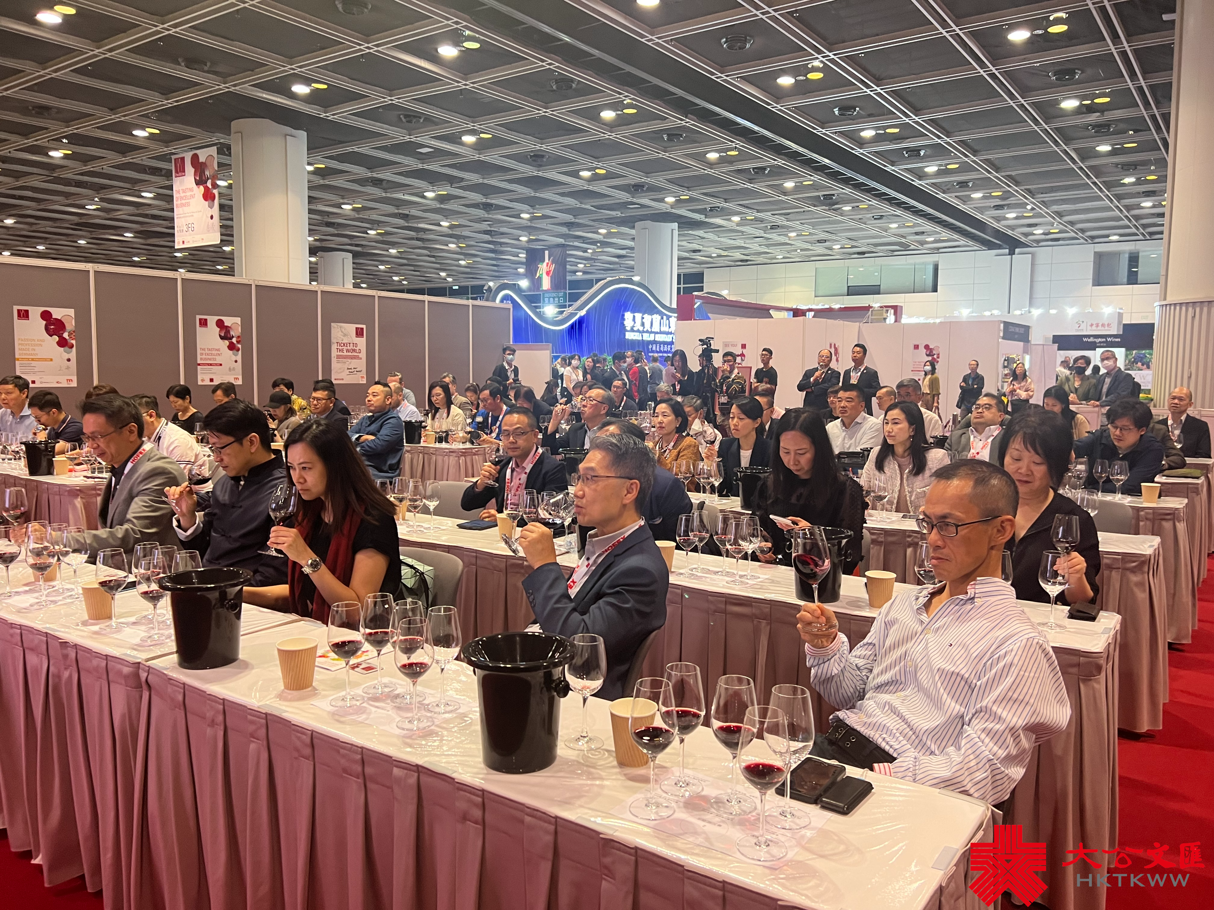 香港專業品酒師協會主席周國明介紹寧夏頂級酒莊的馬瑟蘭、小維多等品類在國際上屢獲獎項,並帶觀眾們品嘗了巴格斯和維加尼酒莊的葡萄酒。