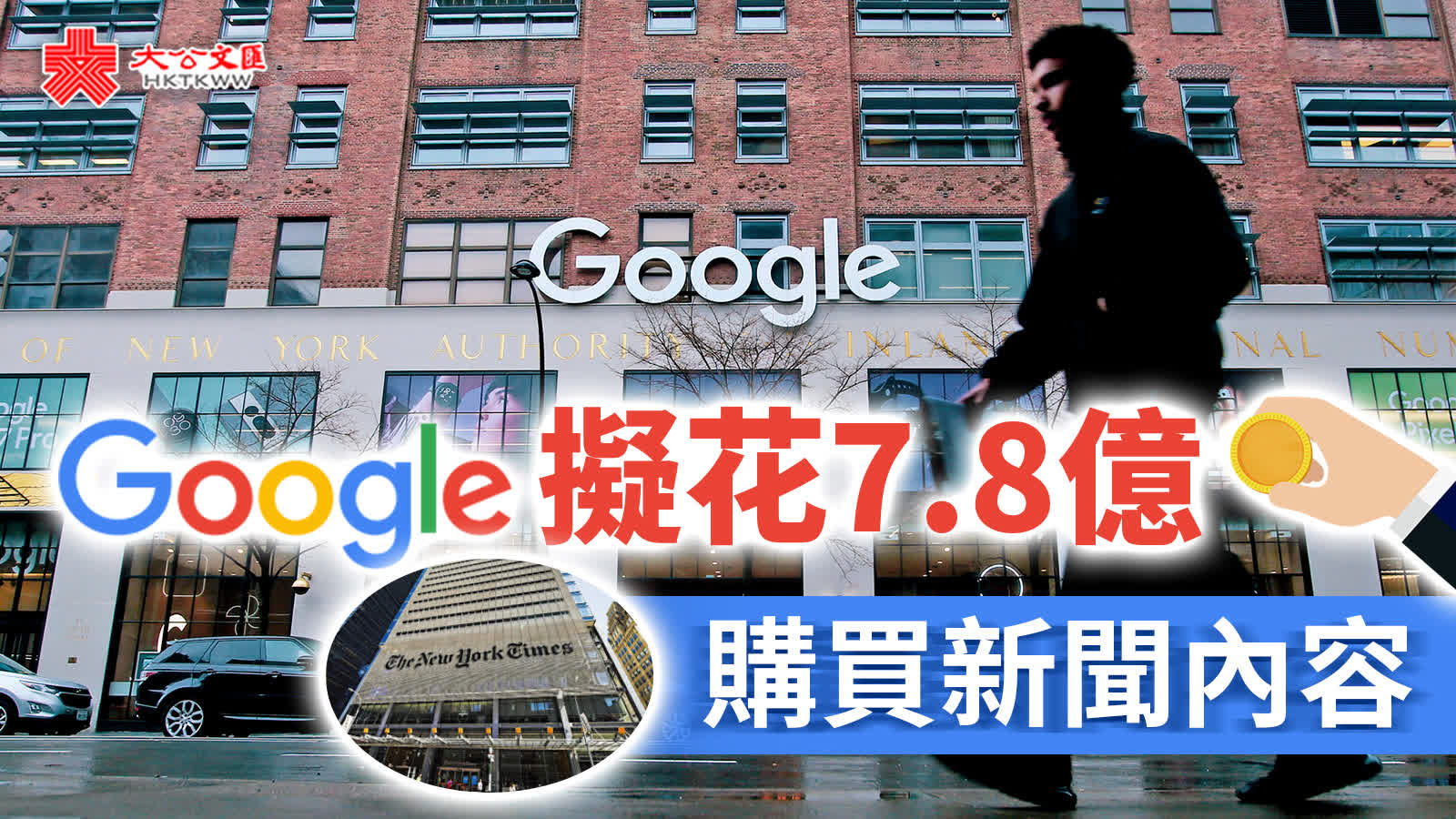 大公報據《華爾街日報》報道:美媒日前披露,谷歌未來3年內將向《紐約時報》支付1億美元(7.8億港元),讓《紐時》新聞內容出現在谷歌的部分平台上。