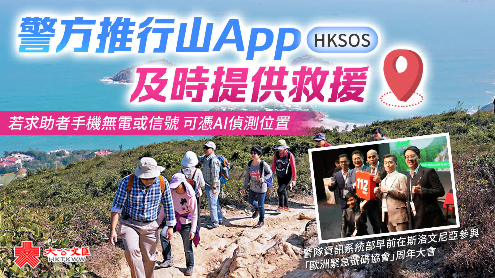「假設市民參加一項行山活動,事前下載了行山專用『HKSOS』手機App並選擇活動時間,譬如設定為4小時,時間過後系統會問用家是否安全,若不關掉,999報案中心就會開始啟動這個App,了解對方有否遇險。」關翠貞指,「HKSOS」是便利市民規劃行程和保障生命安全的手機應用程序,「它有助我們行前一步,哪怕市民無法告知我們遇上問題,只要安裝了,報案中心都能透過程序連結到用家情況」,更及時地提供救援。