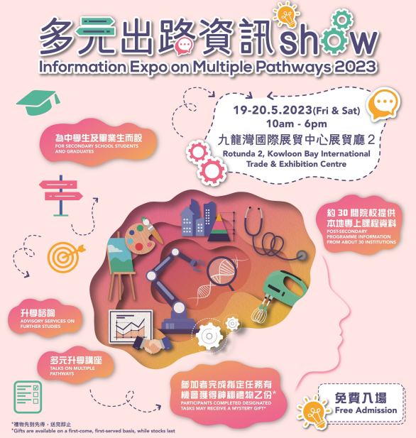 大公文匯全媒體報道,教育局將於5月19日和20日(星期五和六)上午10時至下午6時在九龍灣國際展貿中心二號展貿廳舉辦「多元出路資訊SHOW 2023」(展覽會),為高中學生、家長及教師提供多元出路的最新資訊,協助學生在規劃升學途徑及就業出路方面作好準備。展覽會免費入場,無需預先登記,有關展覽詳情可瀏覽活動網頁。