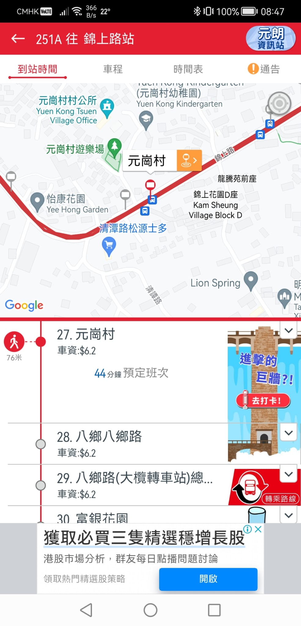 有讀者投訴,九巴手機程式提供的到站時間預報出錯。4月27日早上,讀者於元崗村巴士站等待往錦上路方向的251A,其間發現手機程式顯示,班次預計到達時間為44分鐘,與15至20分鐘的班次服務不符,懷疑脫班。