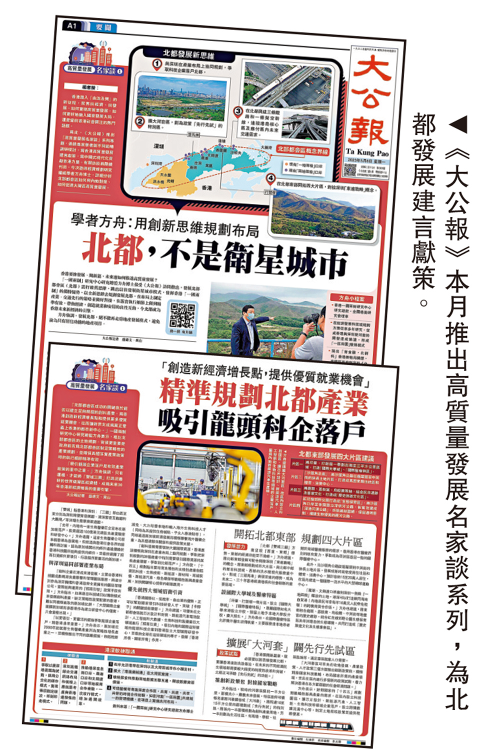 兩項計劃各有側重點,各自發揮着不同的策略目標。陳茂波解釋,「北部都會區」有助促成本港「南金融、北創科」的新產業布局,並有助與大灣區城市的合作和協同發展。去年公布的《財政預算案》已預留1000億元專款加快推動北都的土地、房屋和交通基建發展項目的進程。他透露,發展局正加速推進成立「北部都會區統籌辦事處」,年內會提出具體發展計劃;「引進重點企業辦公室」亦正全速推動引進策略企業的工作,以配合北都的產業布局。政府短期內就區內旗艦項目「新田科技城」的發展方案和土地規劃展開諮詢,目標是2024年就首批新田創科用地開展土地平整工程。