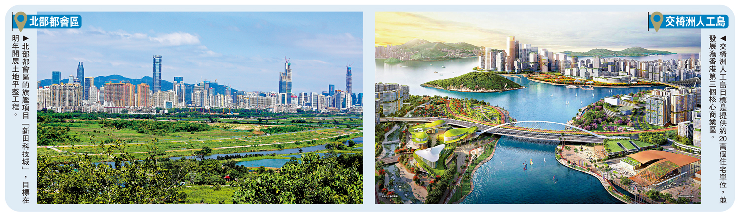 陳茂波透露,「北部都會區」的「新田科技城」短期內將會展開諮詢,明年開始首批土地平整工程;「交椅洲人工島」較大部分資金將會在市場集資,包括考慮公私型合作及發債等。