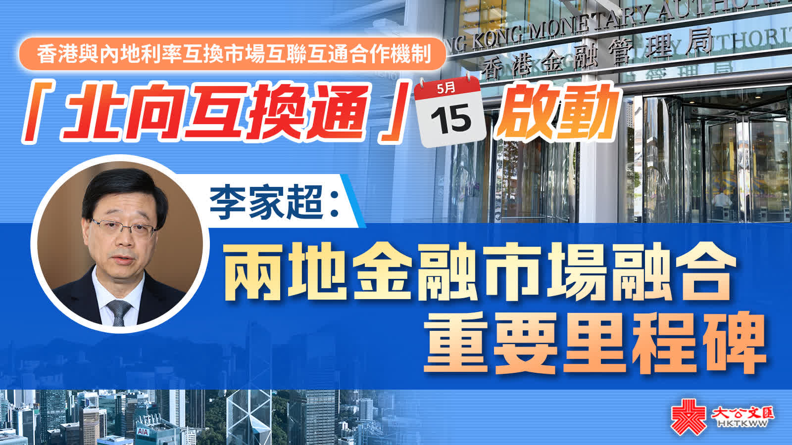 大公文匯全媒體報道,香港與內地利率互換市場互聯互通合作機制(「互換通」)今日(15日)正式啟動,初期先行開通北向交易。行政長官李家超今日出席互換通上線儀式致辭時表示,互換通北向交易正式上線,象徵着兩地金融市場融合的又一個重要里程碑,首次在金融衍生工具領域引進互聯互通安排。香港和境外投資者將可通過兩地基礎設施的互聯互通合作,參與內地銀行間金融衍生品市場。