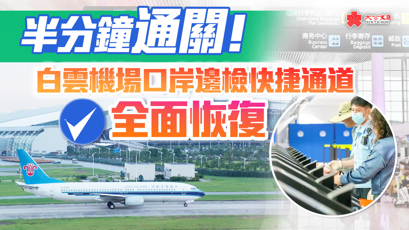 (大公文匯網記者 方俊明報道)今天(15日)起,廣州白雲機場口岸邊檢快捷通道全面恢復通關,T2航站樓出入境大廳共50條快捷通道全部重新啟用,平均每名旅客通關時間不超過半分鐘。