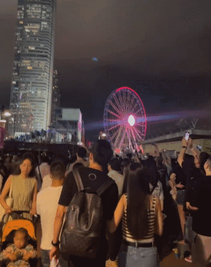 一旁的香港摩天輪排隊要90分鐘起步,但一旦排到就會真香,「在半空中聽到《青花瓷》,還附贈一套煙火表演,這20HKD值了」……