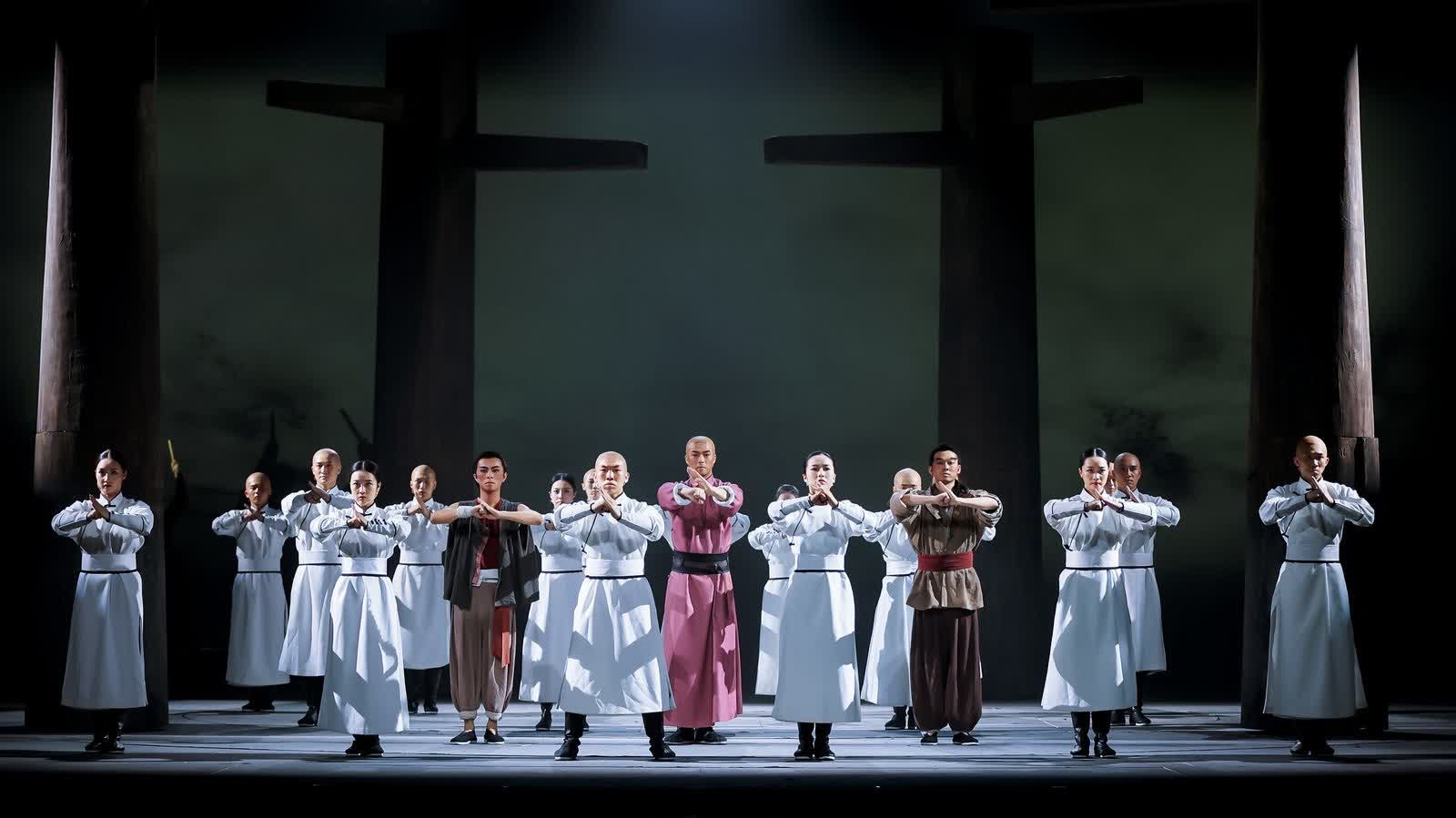 (大公文匯網記者 朱燁 北京報道)音樂劇《俠影·詠春》日前在北京天橋藝術中心首演。值得注意的是,《俠影·詠春》融合了西方音樂劇和中國傳統歌舞劇的表現手法,注重舞台視覺呈現的當代性和國際化。舞台設計採用象徵寓意的四根移動柱子和「筆畫幕」,與多媒體視頻相互作用,創造出多變的戲劇假設空間。這為中國原創音樂劇開闢了新的藝術方向,也為展現中國文化特色和價值提供了有益的嘗試和探索。