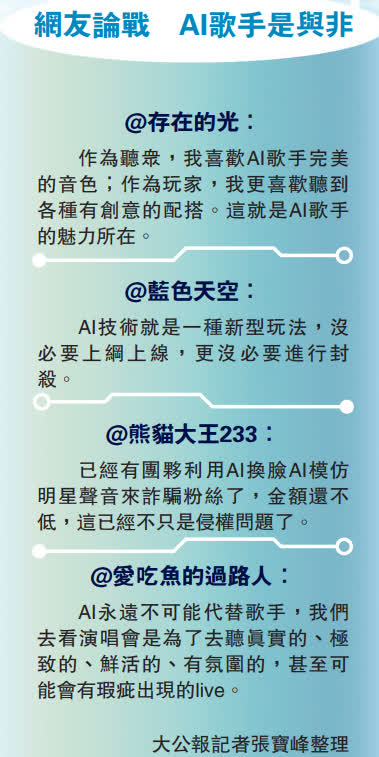 AI唱功了得 歌迷大飽耳福
