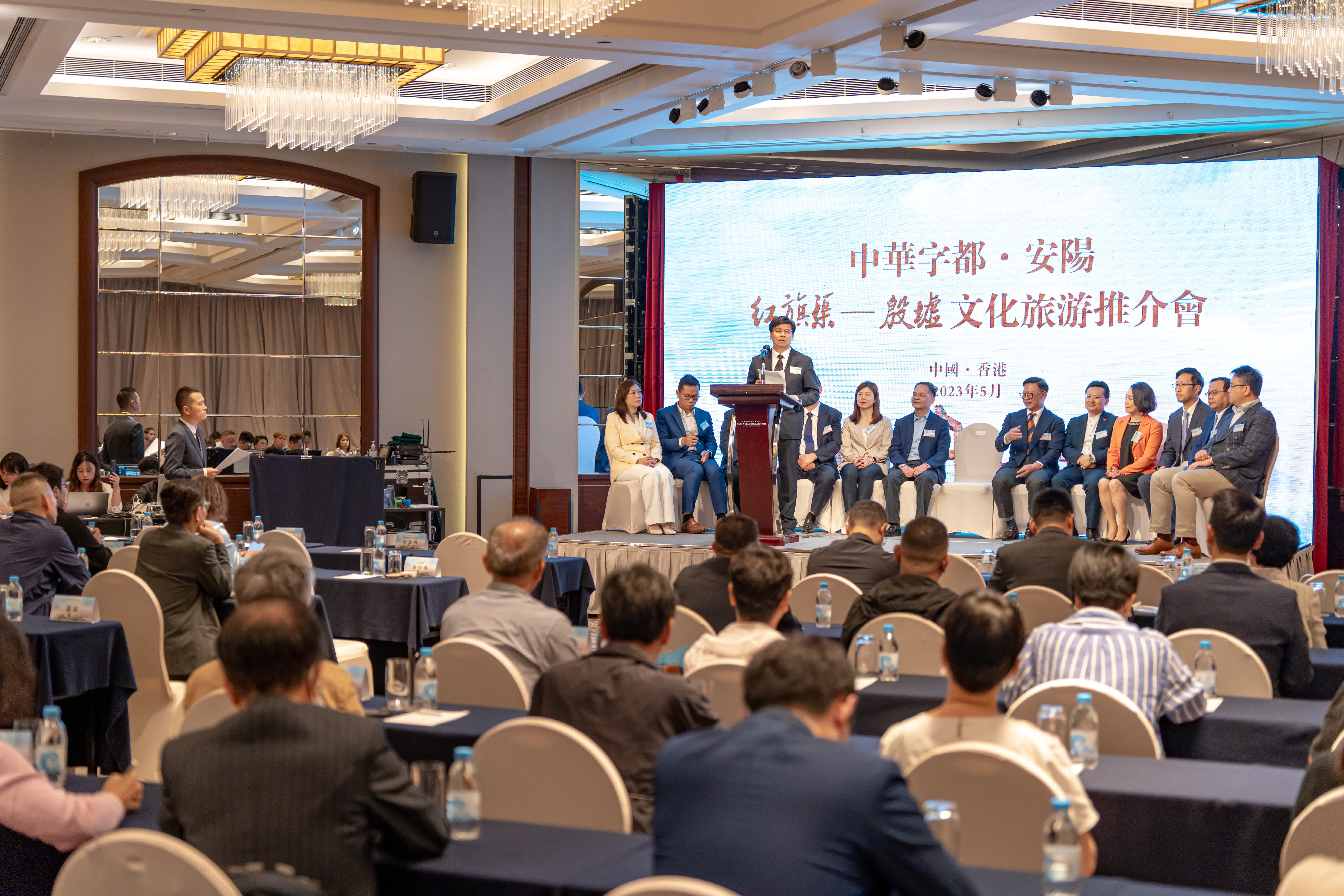 大公文匯網報道,一片甲骨驚天下,千年文字貫古今。為促進安港兩地經貿文化緊密合作交流,「中華字都·安陽」紅旗渠——殷墟文化旅遊推介會於日前(5月15日)在尖沙咀千禧新世界酒店圓滿舉辦,安陽市委書記袁家健帶領參訪團於活動現場向港人派發文旅「大禮包」,他表示,將貫徹落實習近平總書記的重要指示精神,持續推動中國優秀傳統文化發展,打造安陽文化形象及旅遊品牌,接下來會開展一系列安港文化交流活動,包括推出殷墟和紅旗渠等國家5A景點對港人免費入場等優惠措施。