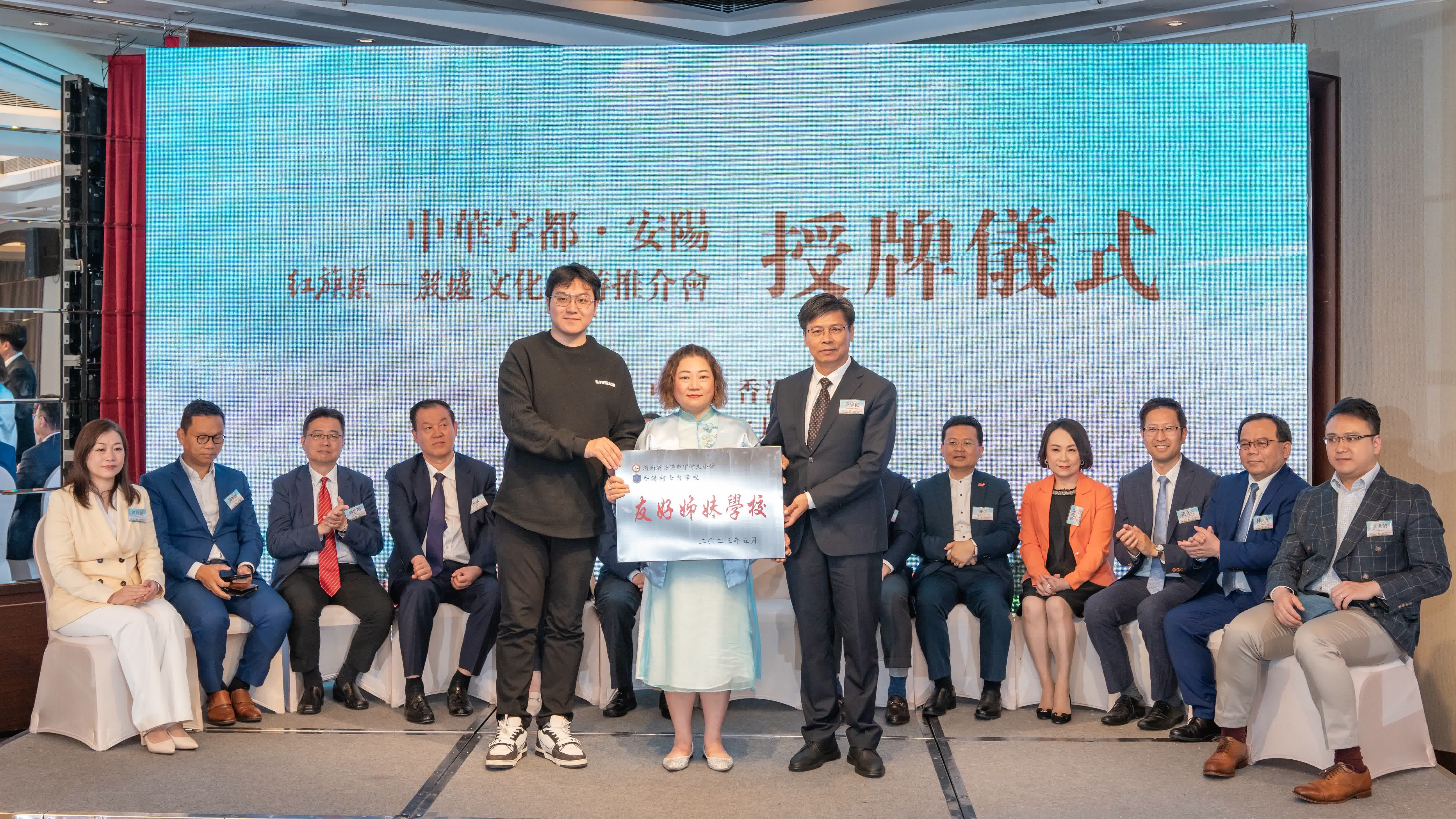 隨後,推介會上播放了安陽文旅宣傳片《關於字的故事》,展示中華字都——安陽的悠久歷史,並舉行了安港兩地結對學校的授牌儀式及旅遊界合作簽約儀式,多所香港中學與安陽的學校簽訂締結姐妹學校的合作協議,共同推動兩地學生交流。