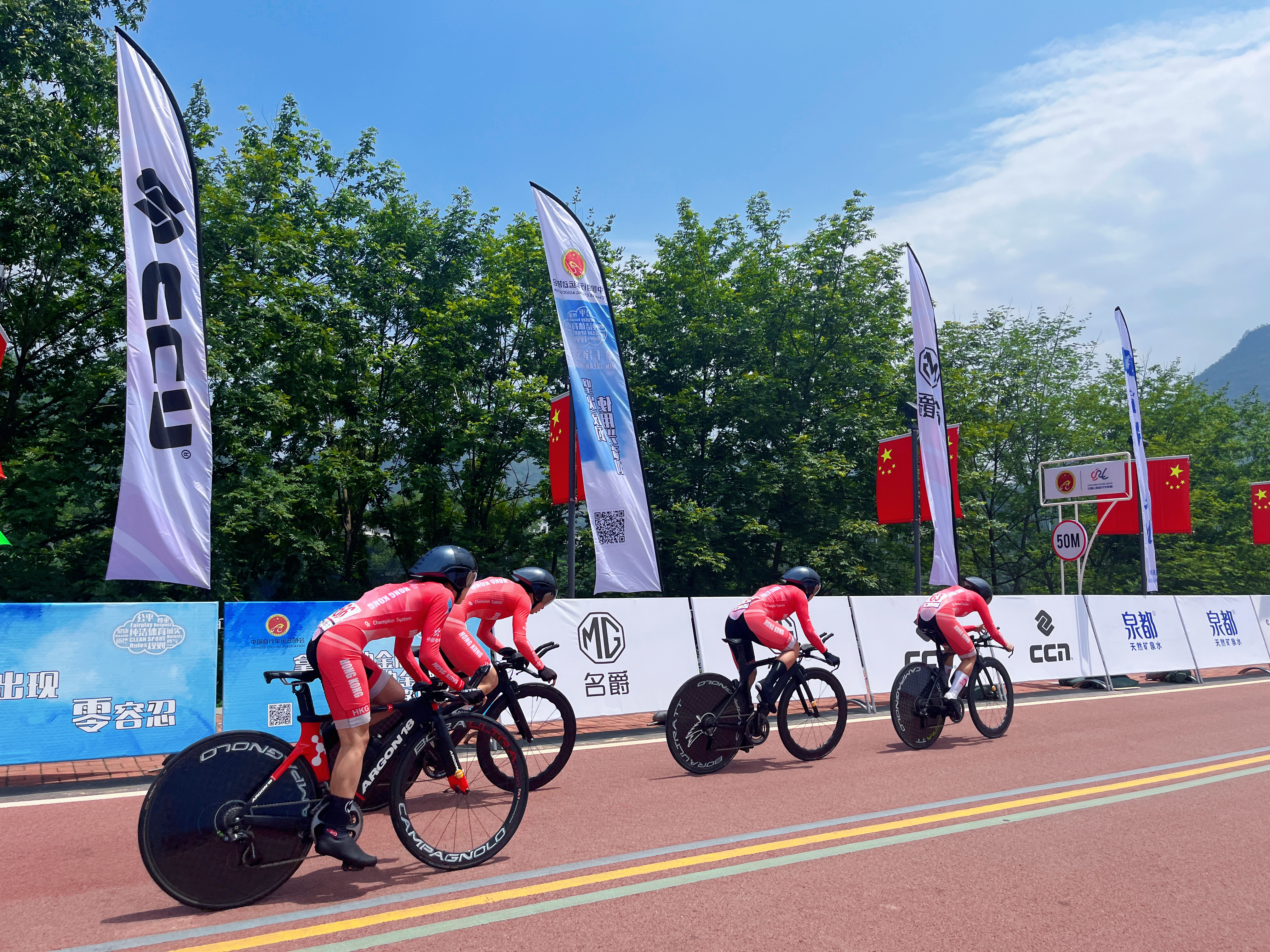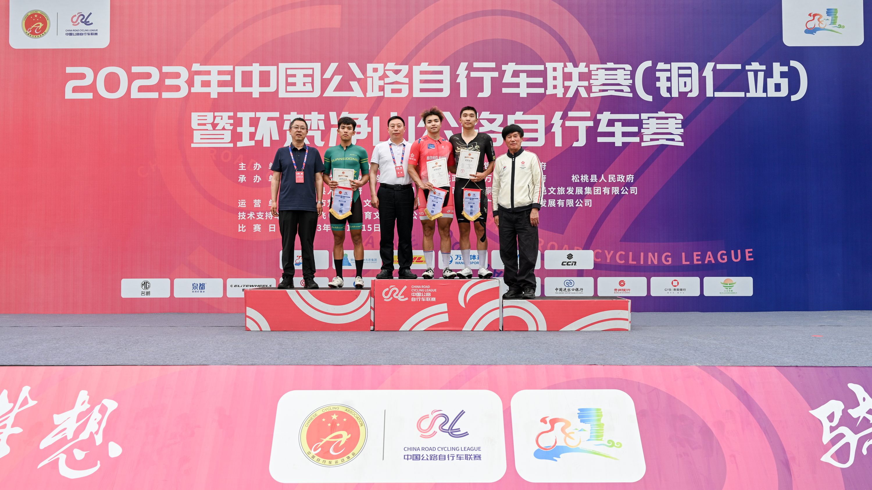 (大公文匯網記者 方俊明)為期4天的2023年中國公路單車聯賽(銅仁站)暨環梵凈山公路單車賽日前閉幕,來自粵港澳大灣區的參賽隊在爭奪戰中喜獲佳績。其中,香港隊獲「男子100公里團體計時賽」第二名,香港隊梁嘉儒獲「男子個人賽」冠軍。