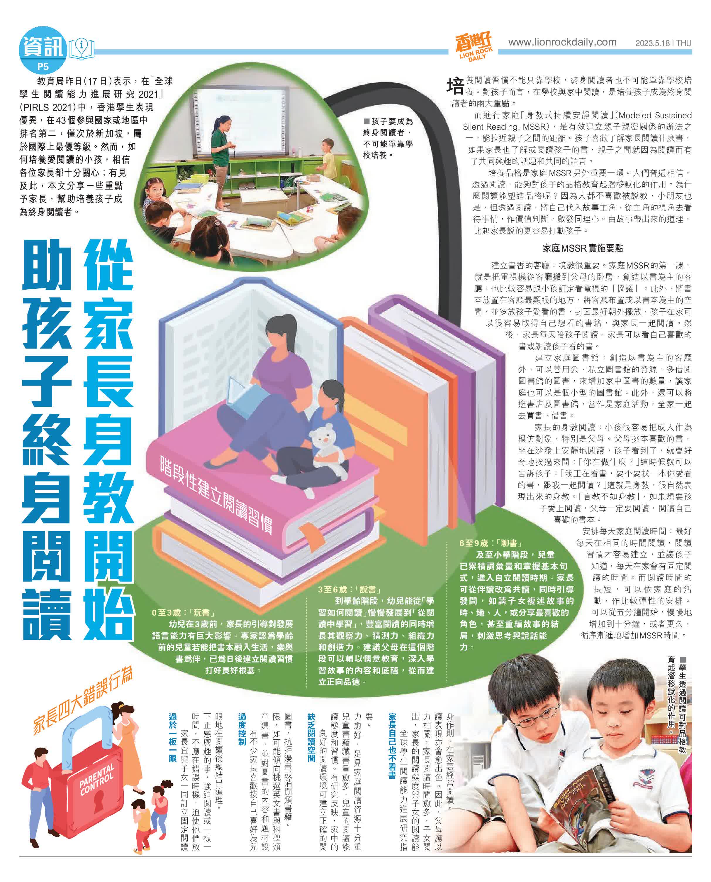 香港仔報道,教育局昨日(17日)表示,在「全球學生閱讀能力進展研究2021」(PIRLS 2021)中,香港學生表現優異,在43個參與國家或地區中排名第二,僅次於新加坡,屬於國際上最優等級。然而,如何培養愛閱讀的小孩,相信各位家長都十分關心;有見及此,本文分享一些重點予家長,幫助培養孩子成為終身閱讀者。