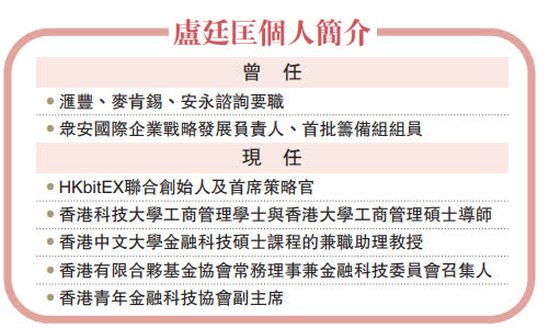 過去香港有關加密貨幣的監管雖看似保守,但盧廷匡認為有關當局是一直在觀察市場的風險,經過深思熟慮後才確定開放的範圍及規則,而且訂立了有效的發牌制度,讓投資者得到保障之餘,又能助業界開拓市場。