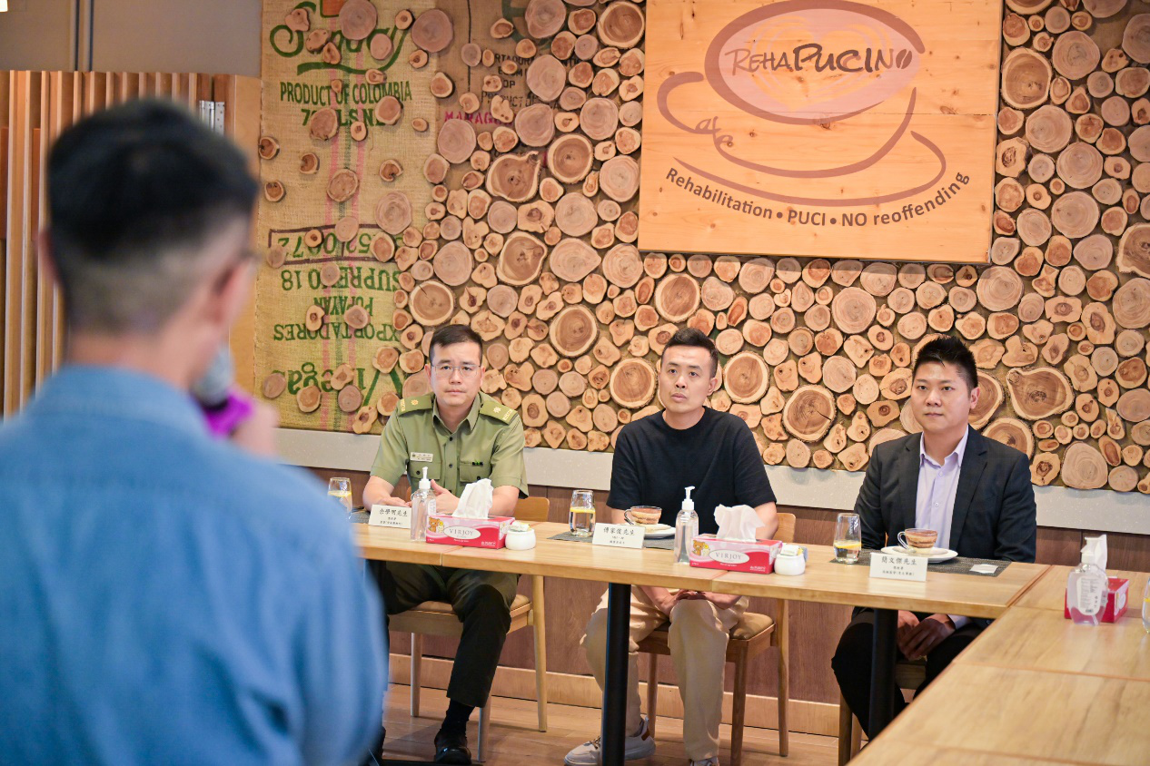 傅家俊亦參觀了壁屋懲教所的教學設施及訓練工場,並與青少年在囚人士於職業訓練咖啡廳「Café Rehapuccino」交談。他寄語青少年在囚人士,即使面對逆境,只要努力不懈,於懲教院所內持續進修和積極裝備自己,總能衝破難關,為自己闖出一片天。