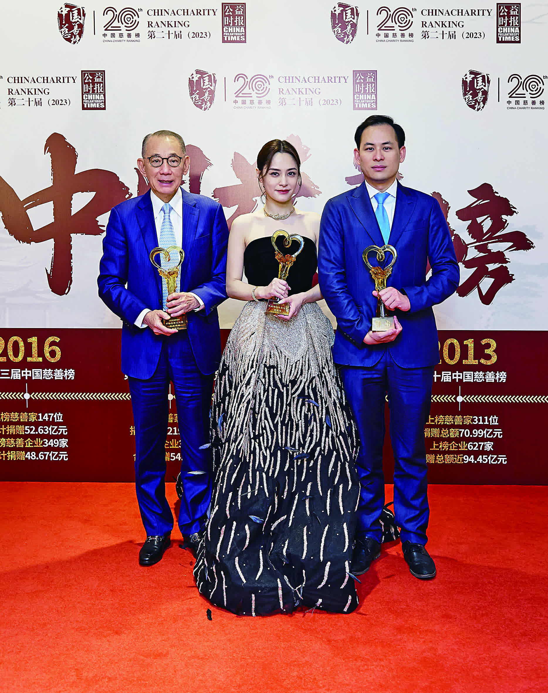 英皇集團主席楊受成與副主席楊政龍昨天(5月18日)一同出席在北京國家會議中心舉辦的「第二十屆(2023)中國慈善榜」,並分別獲頒「中國慈善二十年‧慈善領袖」及「年度青年慈善家」獎項殊榮。今年是中國慈善榜成立20周年,中國慈善榜由《公益時報》於2004年創立,《公益時報》則由國家民政部主管,中國社會工作聯合會主辦。大會今年特別設立「中國慈善二十年‧慈善領袖」最高榮譽表彰,這是楊受成繼2017年獲大會頒發「終身成就獎」後,再創慈善事業的另一里程碑。同時,英皇娛樂藝人鍾欣潼也在今屆頒獎禮獲頒「年度榜樣慈善明星」嘉許。