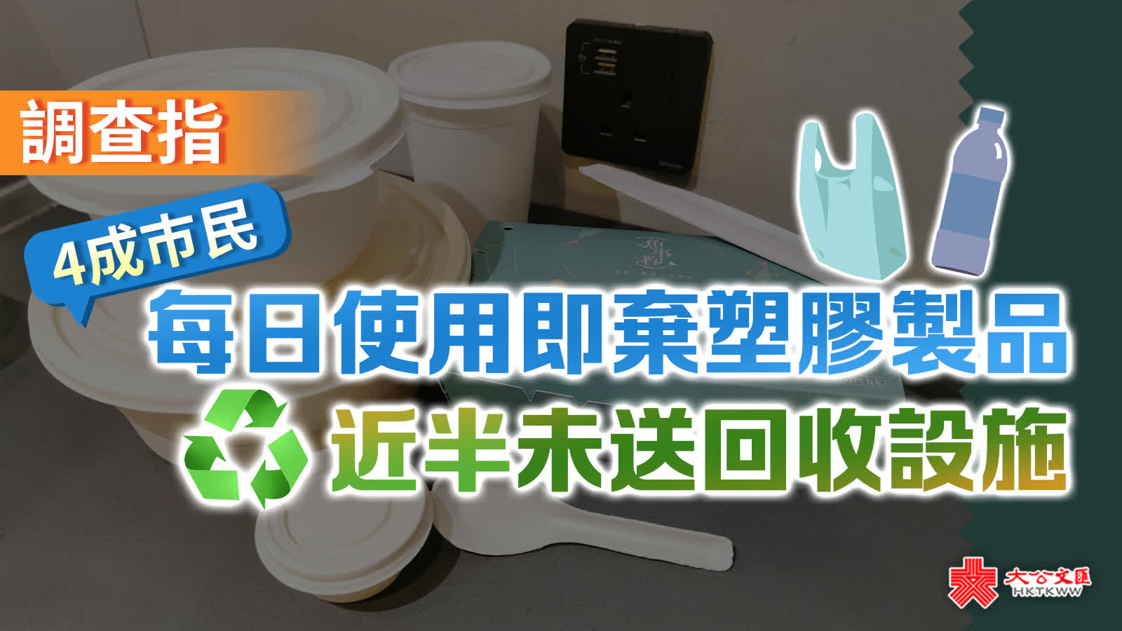 大公文匯全媒體報道,塑膠製品如即棄餐具、膠樽嚴重影響環境生態。有團體早前就市民使用塑膠餐具的頻率等進行問卷調查,今日(19日)公布調查結果,顯示有4成市民每天均有使用即棄塑膠,但逾4成人過去一個月沒有使用回收設施,而原因為回收後的回贈不吸引、回收地點不方便、回收設施不足等。有議員表示調查顯示市民環保意識雖高,但「知行未合一」,政府要做更多工作令市民身體力行,又指香港的「走塑運動」比其他地區慢了十年。