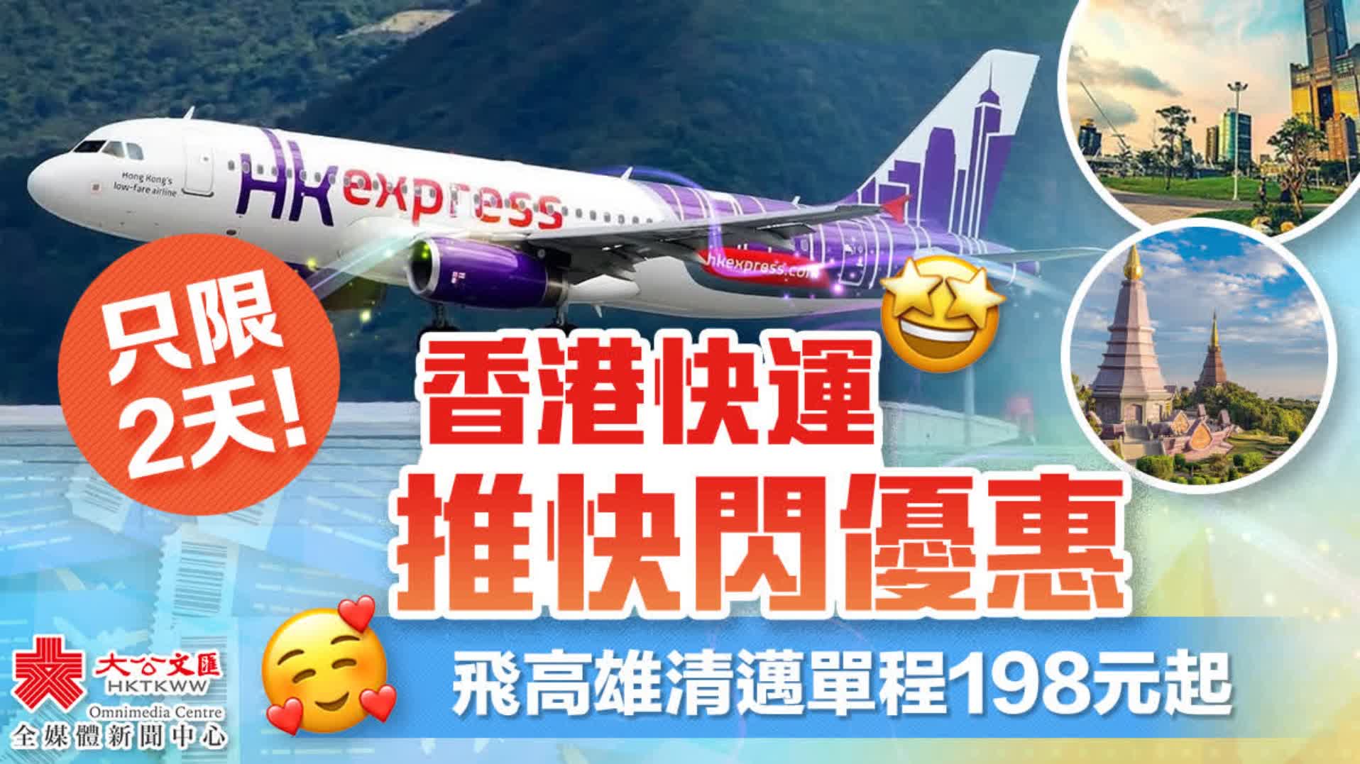 大公文匯全媒體報道,香港快運今日(19日)推出限時48小時快閃優惠,香港飛高雄、清邁、芽莊單程只需198港幣起,來回連稅高雄1197港幣、芽莊1193港幣、清邁1253港幣起。優惠期由即日起至明日(20日),旅行日期由5月27日至7月12日。