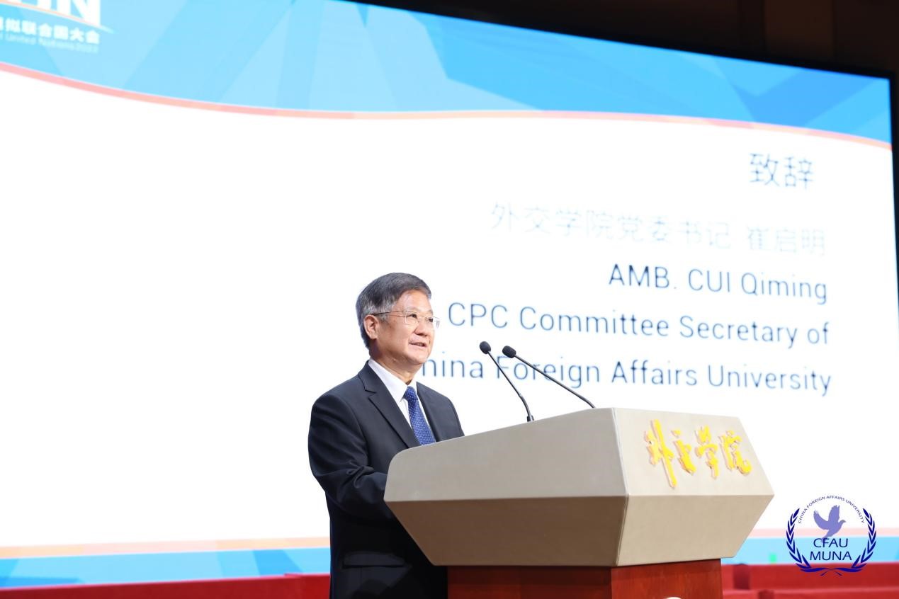 模擬聯合國大會旨在幫助青年人熟悉聯合國運作方式,激發青年人對聯合國工作的興趣和對國際事務的責任感,是助力青年參與全球治理「練兵場」。外交學院黨委書記崔啟明、外交部國際司蔣端公使、中國聯合國協會前副會長兼總幹事龐森大使等出席大會開幕式。崔啟明在致辭中表示,當今世界百年未有之大變局加速演進,聯合國作為多邊主義核心,是完善全球治理、維護國際公平正義主要平台。中國一直以來積極維護多邊主義,致力於推動構建人類命運共同體。新時代中國青年應厚植家國情懷、拓寬全球視野、貢獻青年智慧,以擔當意識、創新精神描繪全球治理發展藍圖,探索熱點問題解決之道。蔣端公使在致辭中表示,希望本次大會來自不同國家的青年能互學互建、增進友誼、攜手前進,成為維護和推動多邊主義的新生力量,為世界和平與發展作出貢獻。開幕式後,龐森大使為與會代表作《中國與聯合國》專題報告,對我國外交外事工作和全球治理工作發表深刻分析和獨到見解。