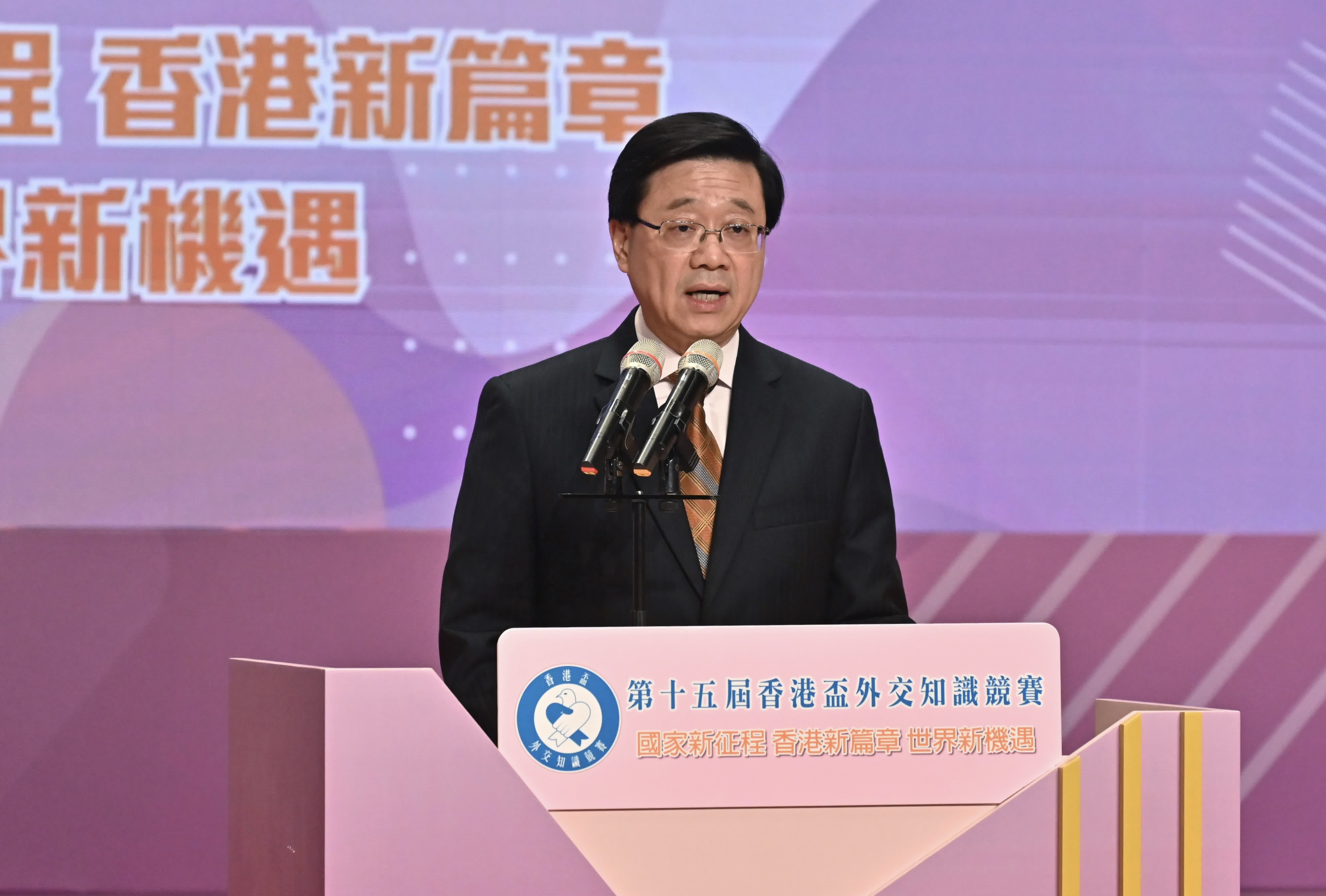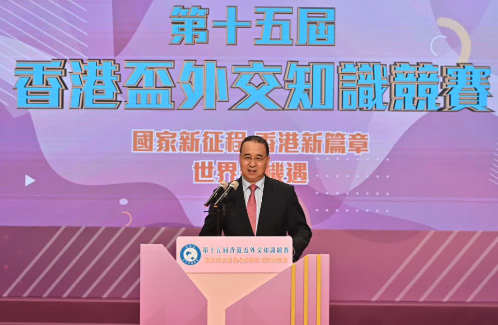李家超致辭時表示,學習外交知識對建立和鞏固香港青少年國民身份認同和國家意識起着重要作用。希望同學們繼續多關心和認識國家發展、世界格局,好好裝備自己,成為愛國愛港、自強不息、具備國際視野的新一代。