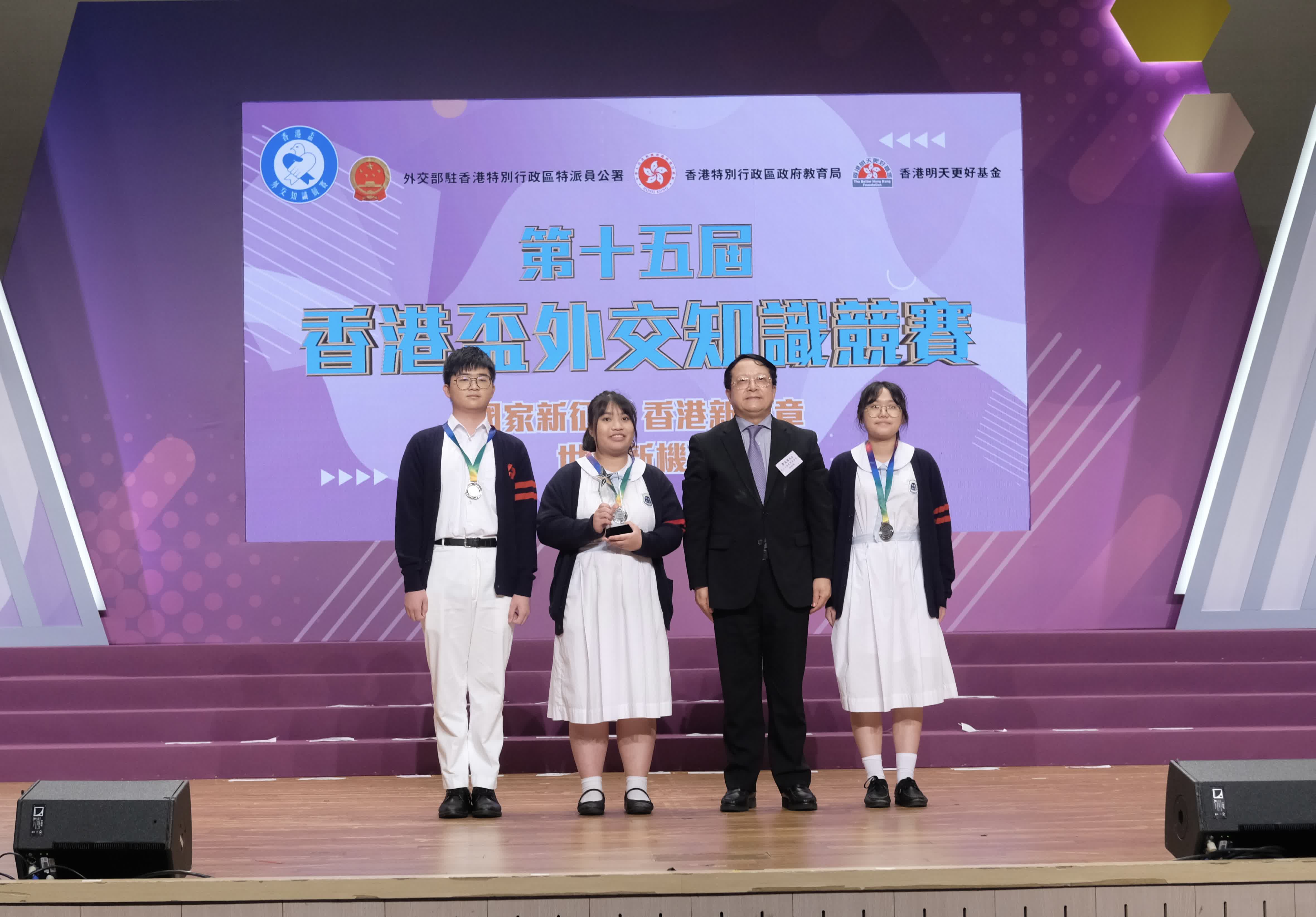 第十五屆「香港盃」外交知識競賽以「國家新征程,香港新篇章,世界新機遇」為主題,共有253所學校參加,超過六萬名學生報名。決賽現場氣氛熱烈,有近300名中小學生和各界人士出席。外交公署副特派員潘雲東、前特區律政司司長梁愛詩、香港中文大學教授劉遵義、全國人大香港基本法委員會副主任譚惠珠、港區全國人大代表鄺美雲、香港賽馬會副主席李家祥等擔任比賽評委。