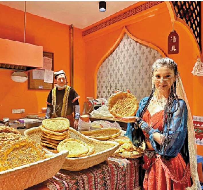 唐人把胡人帶來的東西都冠以「胡」字,胡餅就是其中之一。胡餅在唐代十分風靡,而長安十二時辰主題街區的胡食巷裏,胡餅也是最受現代人喜愛的美食。「我們現在所說的饢其實就是那時的胡餅。」街區工作人員表示,剛出鍋的烤饢皮色焦黃,香酥可口,能夠嘗出最接近小麥的真實味道。還原饢坑煙火氣,加上仿唐街區的氛圍,讓人頓時有一種在唐長安城啃胡餅的酣暢。