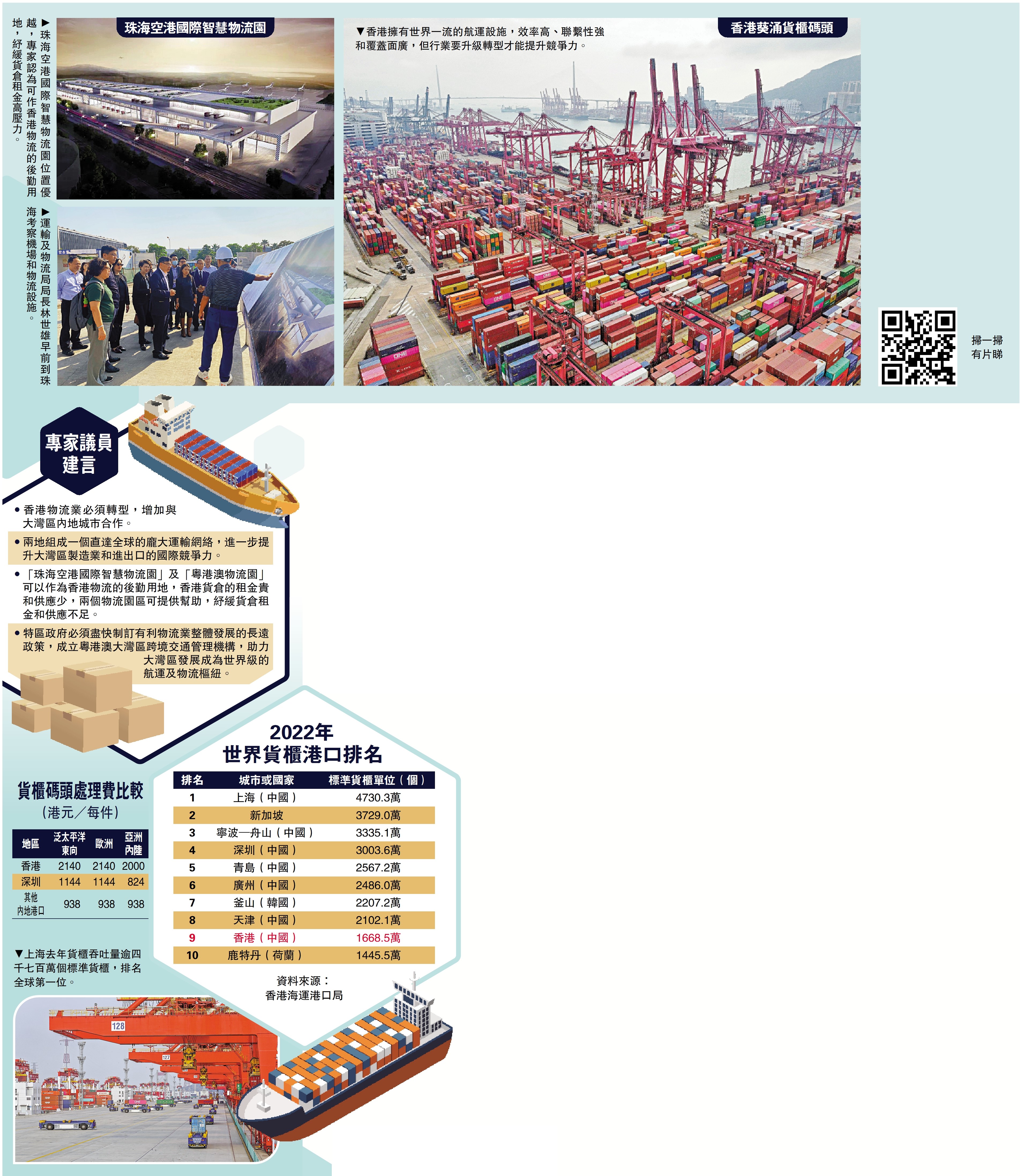 梁啟元指出,本港的物流業運載力,一半以上來自空運,但現時機場的運載力只恢復五成;航運方面,不少企業已經直接改到深圳或廣東省的港口,如果只從事轉口,成本較貴,始終難以跟內地的港口競爭,所以必須改變營運模式,推動整個大灣區的區域合作。